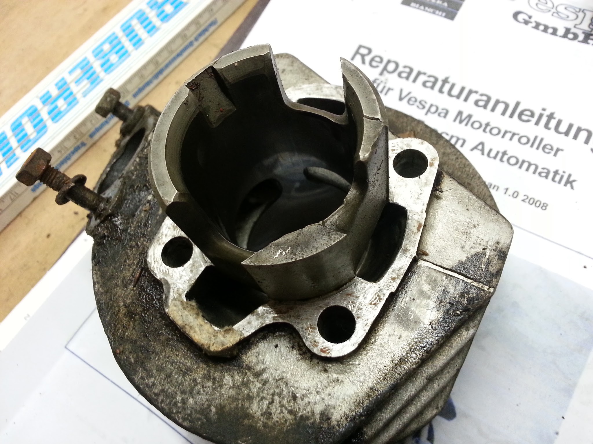 Ich habe eine Vespa PK XL 2 Automatik Bj. 1993 bei der sich immer wieder der Krümmer vom Zylinder löst. Ich habe letztes Jahr den Zylinder gegen einen 75 ccm Zylinder tauchen lassen. Nach ca. 300 km war der Krümmer losgerüttelt. Eine Schraube weg, Dichtung weg. Auch an den Stehbolzen ware die Mutter lose. Ich habe einen neuen Krümmer montiert (habe einen Sito Auspuff). Da die verbliebene Schraube recht kurz war, habe ich längere Schrauben verwendet, hitzebeständiges Locktite etc. An den Stehbolzen habe ich Quetschmuttern verwendet. Ergebnis: Krümmer losgerüttelt. Wieder nach ca. 300 km. Auch dieses mal fehlte wieder eine Schraube zwische Krümme un Zylinder. Ob sich die Verschraubung an den Stehbolzen auch gelöst hat, konnte ich noch nicht prüfen. Offenbar gibt es aber ein Problem mit Verspannungen und/oder Vibration. Ich komme aber nicht drauf, was das Problem ist. Ich habe hier im Forum vielfach darüber gelesen und die Tipps umgesetzt. Trotzdem tritt das Problem mit