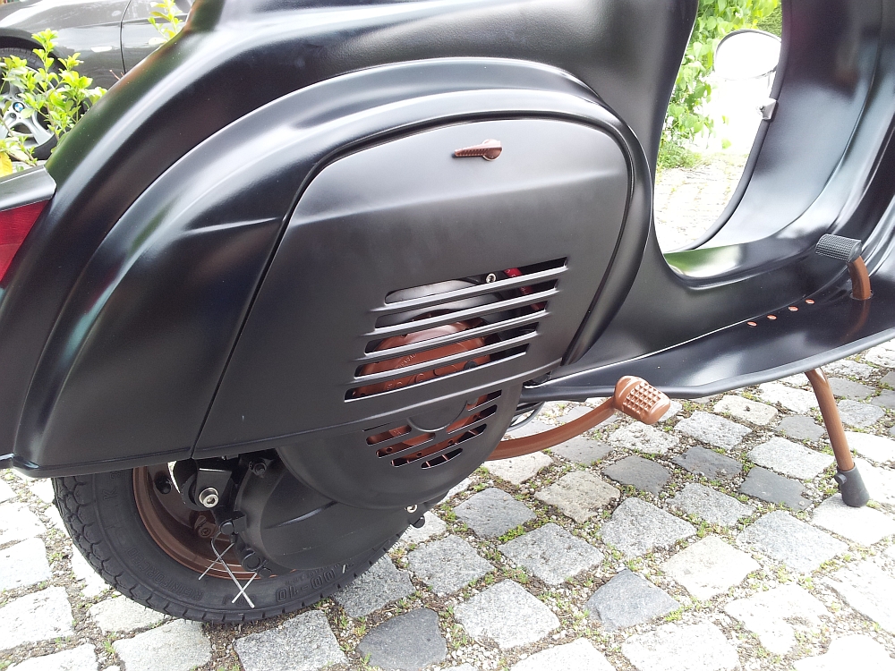 Ich habe erst später erfahren, dass die Vespa nach dem Umbau ca. 16 Monate gestanden hat. Jedenfalls ist der Motor undicht. Es wurde jetzt schon mal nachgearbeitet, angeblich war die Getrieböl Ablasschraube locker. Gestern habe ich sie abgeholt, der Motor war äußerlich komplett sauber. Heute bin ich ca. 30km gefahren , danach sah der Motor so aus (Videos im Link).
