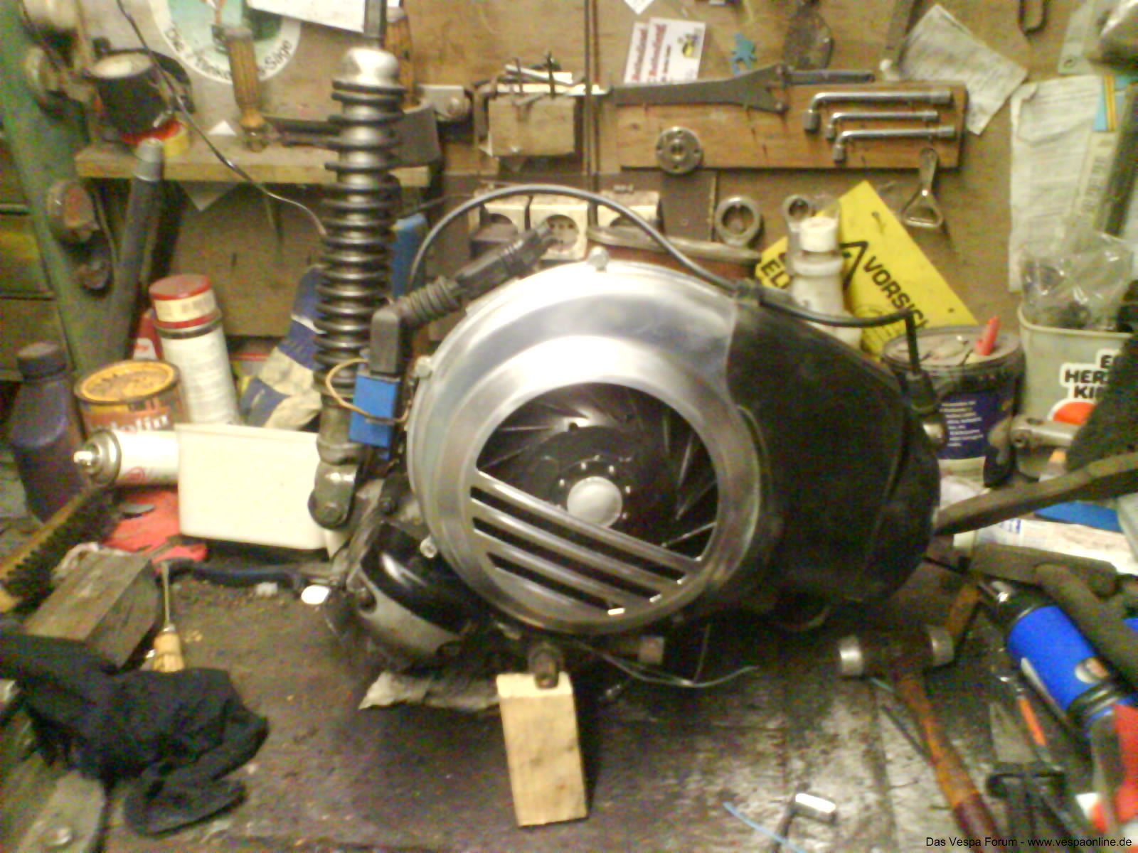 Heute habe ich die Batteriehalterung geschliffen, grundiert und Schwarz lackiert. Anschließend habe ich die Schaltrastenabdeckung, die Bremstrommel und den Vergaser samt Lustfilter wieder am Motor angebracht.