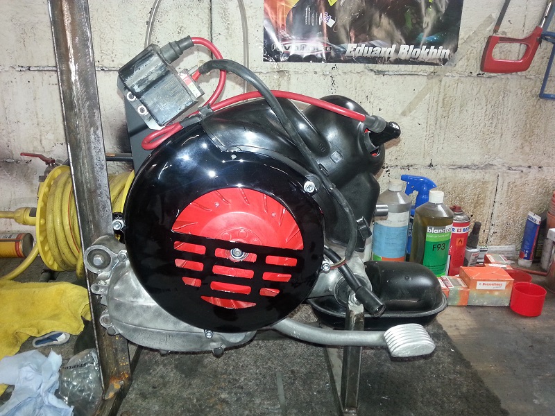 Ich habe erst später erfahren, dass die Vespa nach dem Umbau ca. 16 Monate gestanden hat. Jedenfalls ist der Motor undicht. Es wurde jetzt schon mal nachgearbeitet, angeblich war die Getrieböl Ablasschraube locker. Gestern habe ich sie abgeholt, der Motor war äußerlich komplett sauber. Heute bin ich ca. 30km gefahren , danach sah der Motor so aus (Videos im Link).