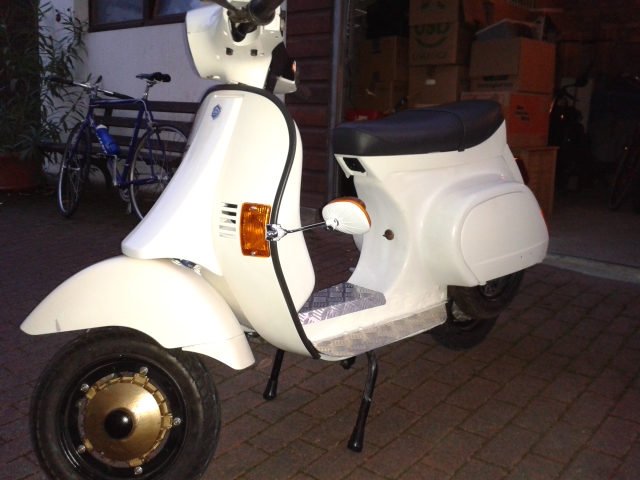 Hallo, ich habe bei der abgebildeten PX 80 lusso die Trittbleche geschweißt. Da sie noch komplett im O-Lack steht (und das soll so bleiben), möchte ich die geschweißten Stellen nur beilackieren. Es ist eine Vespa von 1990, gebaut in Deutschland.