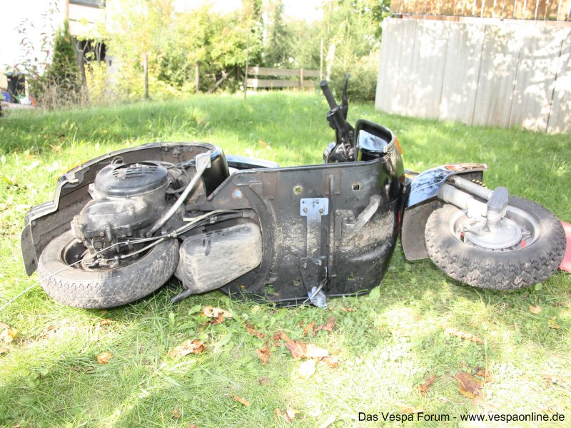 Ich habe erst später erfahren, dass die Vespa nach dem Umbau ca. 16 Monate gestanden hat. Jedenfalls ist der Motor undicht. Es wurde jetzt schon mal nachgearbeitet, angeblich war die Getrieböl Ablasschraube locker. Gestern habe ich sie abgeholt, der Motor war äußerlich komplett sauber. Heute bin ich ca. 30km gefahren , danach sah der Motor so aus (Videos im Link).