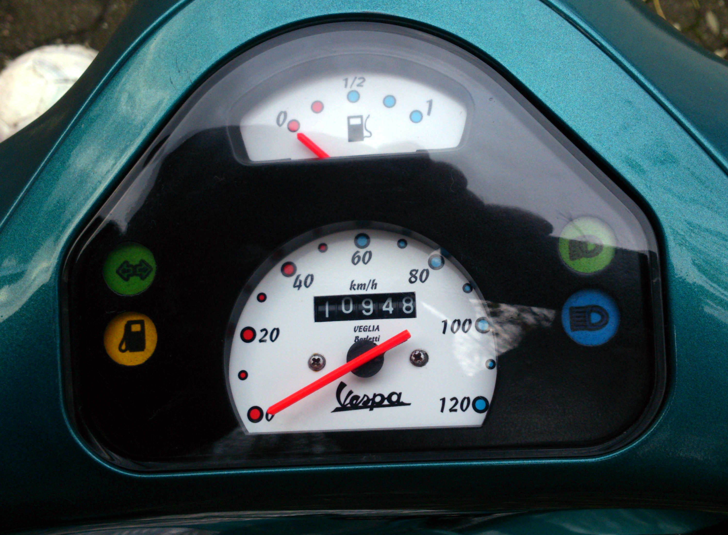 Habe in meine Pk 50 einen Tacho von der 125er eingebaut. Da die Zifferblätter und die Abdeckung nicht mehr so schön waren habe ich per Photoshop neue erstellt. Die Abdeckung ist schwarz Lackiert. Die graue Abdeckung des Tachos wurde in der Farbe der Vespa Lackiert.