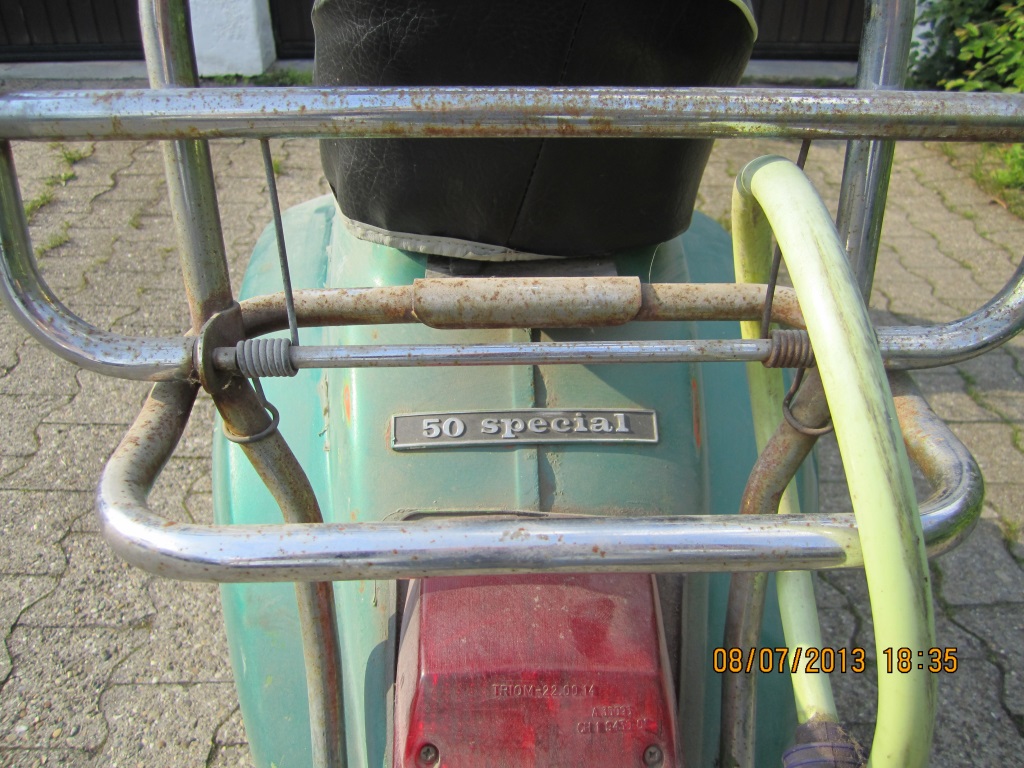 Ich möchte das genaue Modell herausfinden. Auf den Seitenhauben steht Vespa 50, aber ich weiß nicht ob das der vollständige Name ist.