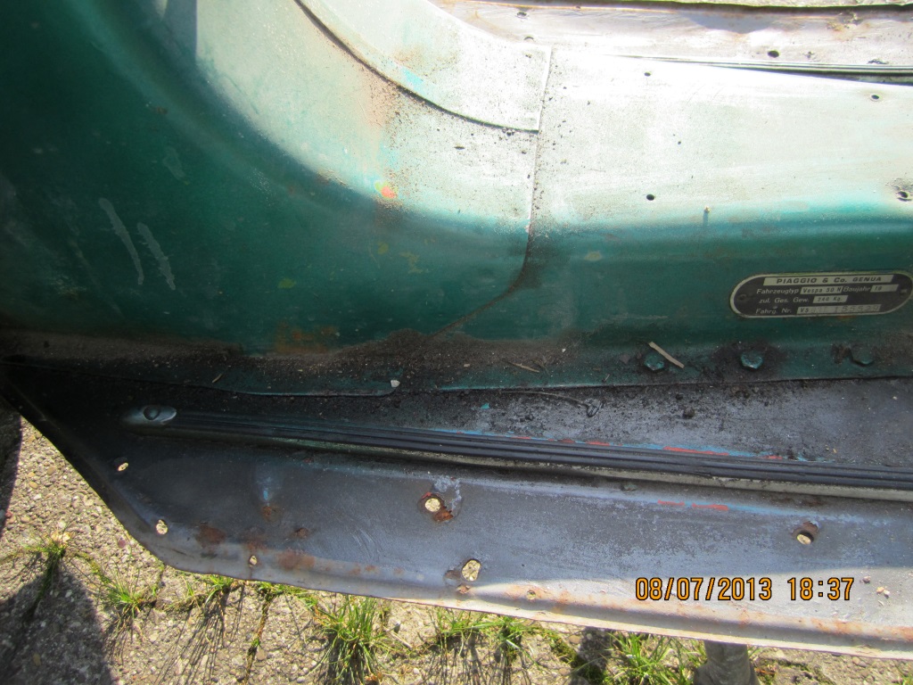 Unter der Trittgummimatte kein nennenswerter Rost, keine Spachtelmasse und kein Riffelblech - aber reduzierte Trittleisten.