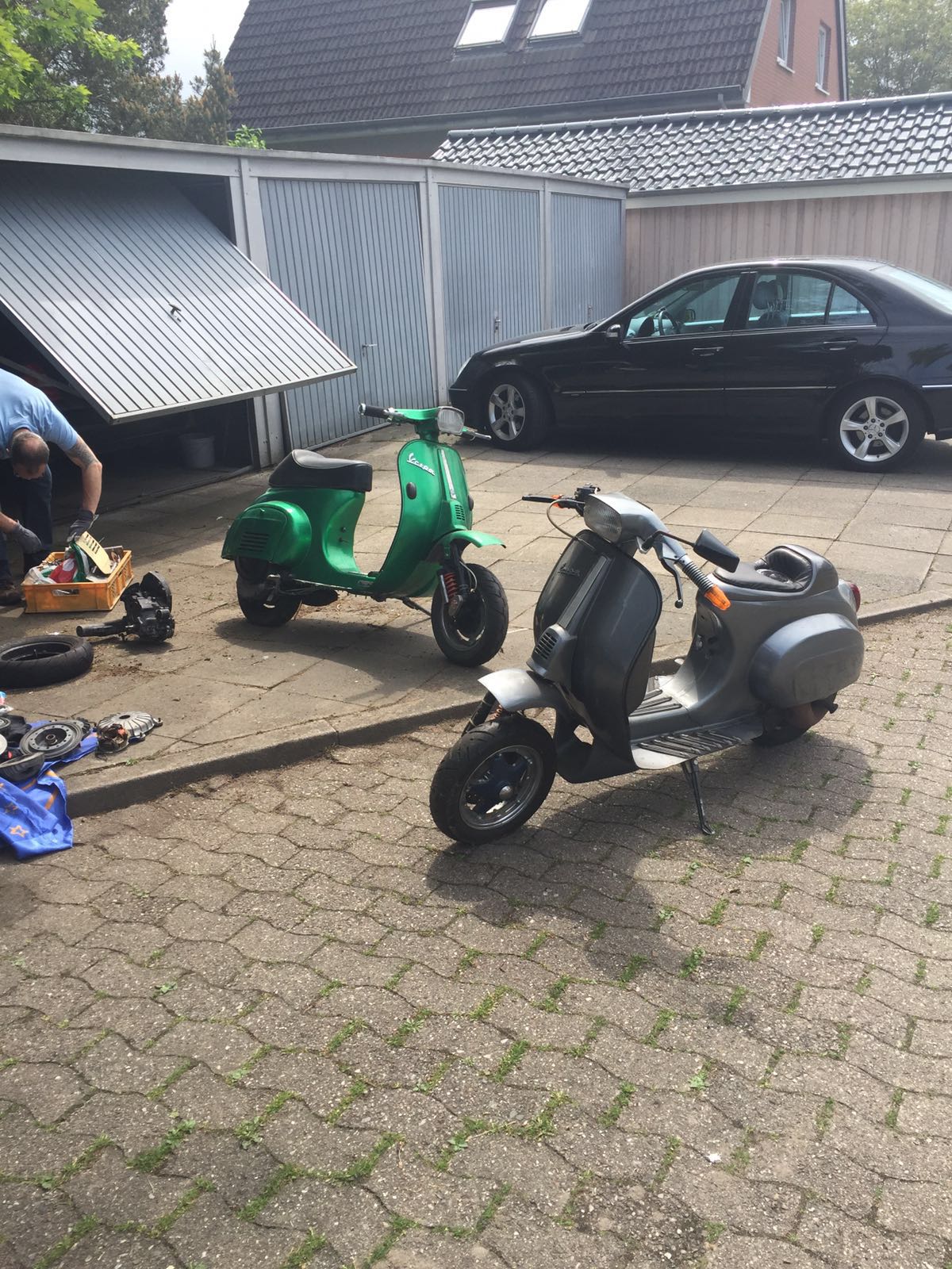 Die beiden haben einen 85er DR Zylinder verbaut mit einem 16er Ritzel, für eine längere Übersetzung und sind technisch in einem guten Zustand. Beide brauchen etwas Liebe aber fahren, bremsen, schalten und machen das was Roller sonst so machen.