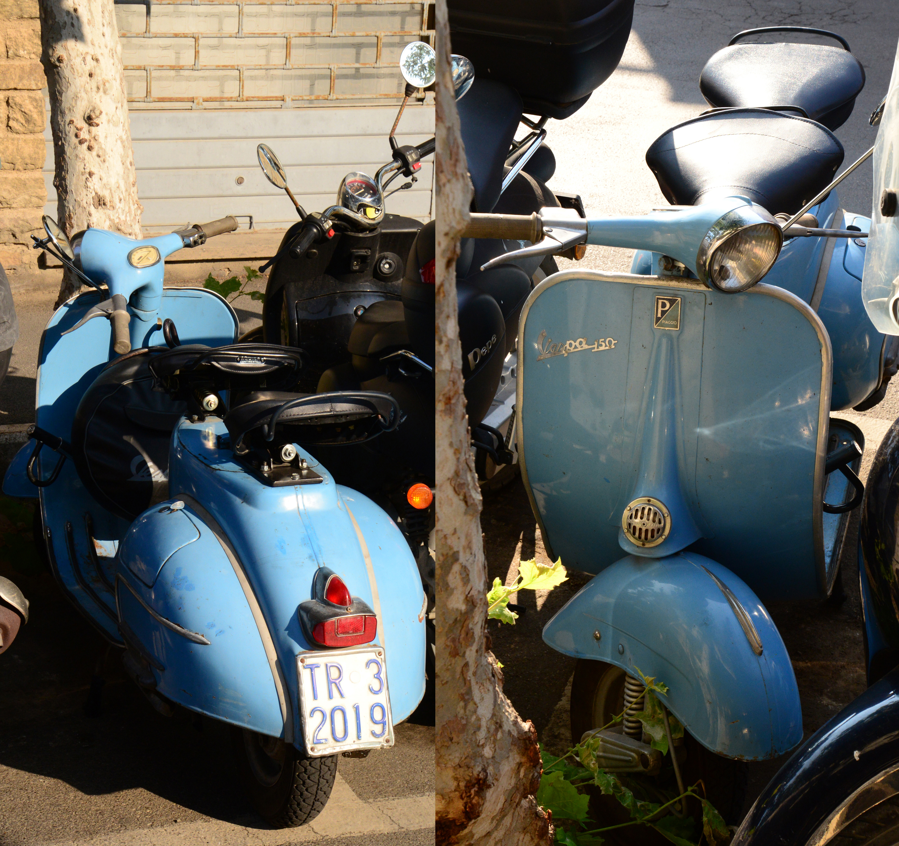 Diese Schönheit habe ich vor ein paar Jahren in Italien fotografiert. Achtlos am Straßenrand abgestellt, eingezwängt zwischen modernen Plastrollern.