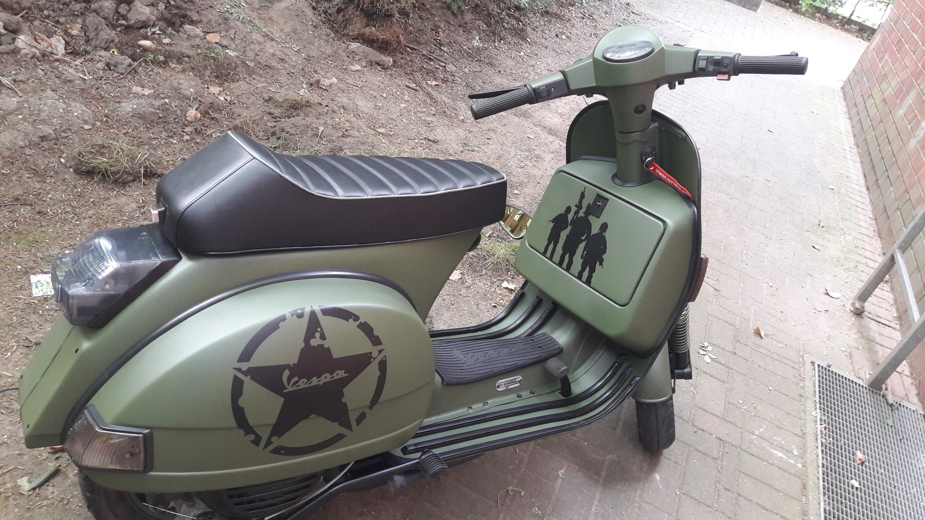 Ich möchte das genaue Modell herausfinden. Auf den Seitenhauben steht Vespa 50, aber ich weiß nicht ob das der vollständige Name ist.