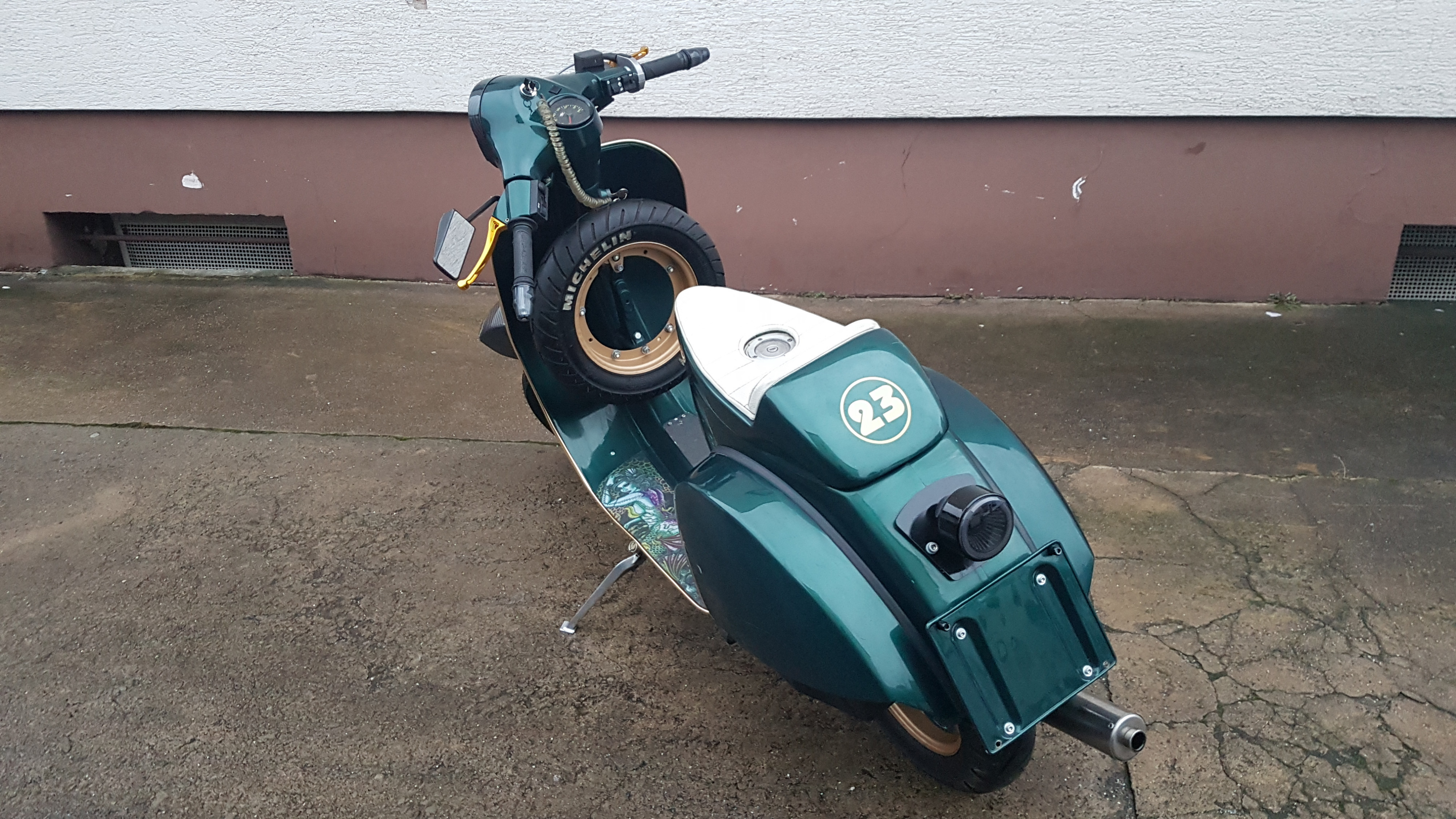 ich bin gerade dabei einen 177er Polini GG aufzubauen. Standard-Kurbelwelle, 24er SI, Polini-Box, etwas längere Übersetzung. Normaler Luftfilter ohne Löcher.