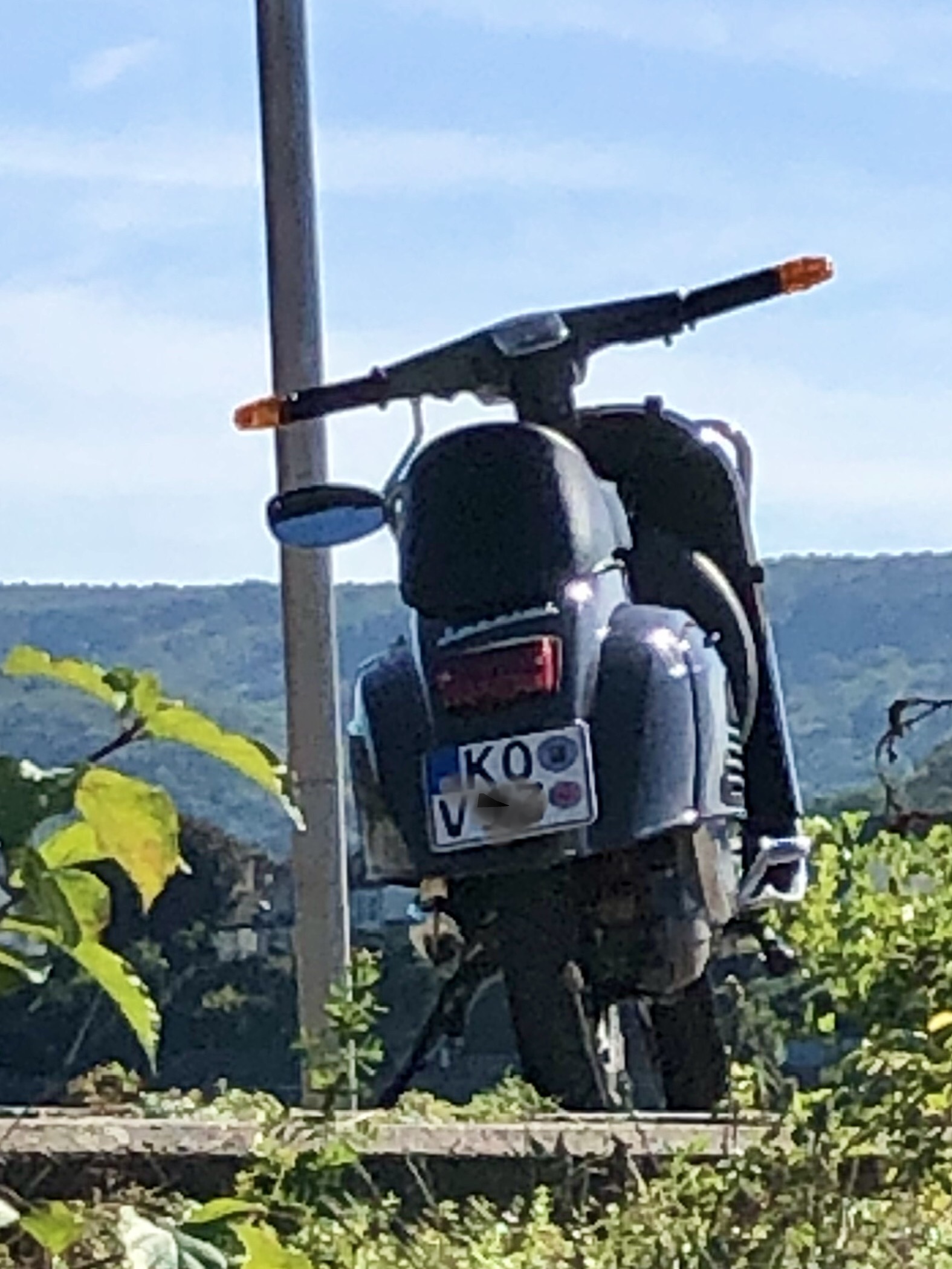 Nach 1 Monat kloppt mir während der Fahrt völlig unerwartet die Vorderradbremse (zum Glück nur bei Tempo 30) rein, ich kann mich gerade so mit einer geübten Judorolle über den Lenker hechten und komme sicheren Standes auf beiden Beinen zum Stehen. Die Cosa habe ich dann mit der wütenden Energie die ich dann noch hatte, auf einen öffentlichen Motorradparkplatz in der Nähe geschoben und dort ein halbes Jahr stehen lassen. (Ich weiß - Schande - ich war wütend auf mich, meinen Vater und sonst auch auf alles).