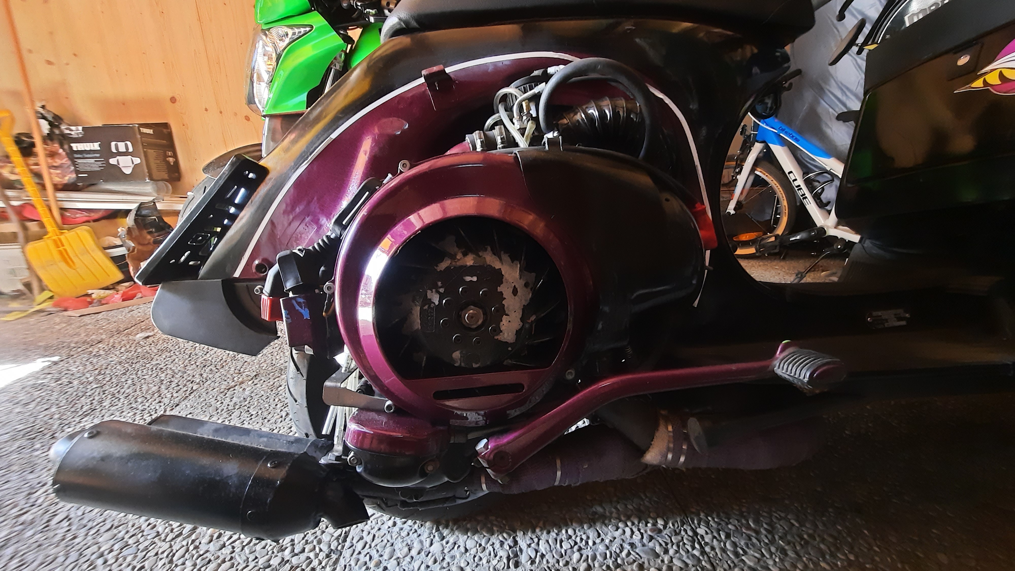 Ich habe erst später erfahren, dass die Vespa nach dem Umbau ca. 16 Monate gestanden hat. Jedenfalls ist der Motor undicht. Es wurde jetzt schon mal nachgearbeitet, angeblich war die Getrieböl Ablasschraube locker. Gestern habe ich sie abgeholt, der Motor war äußerlich komplett sauber. Heute bin ich ca. 30km gefahren , danach sah der Motor so aus (Videos im Link).