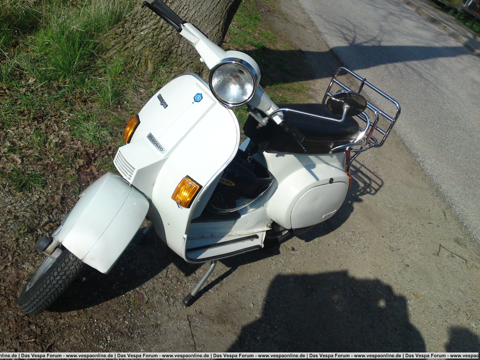 Nun habe ich auf vespafarben.de nach dem richtigen Farbton geschaut, finde aber für die PX80 drei verschiedene Weißtöne. Klicke ich dort auf den angegebenen Link sieht es auf dem folgenden Foto nach Biancospino 715 aus (was ich aber nirgends finde). Wenn ich die KI befrage, würde die sich eher für Weiß 693 entscheiden. Auch hier gibt es Beispielfotos, wo das passen könnte. Und dann soll es noch RAL 9016 und RAL 9010 geben, was gut an die originale hinkommen soll.
