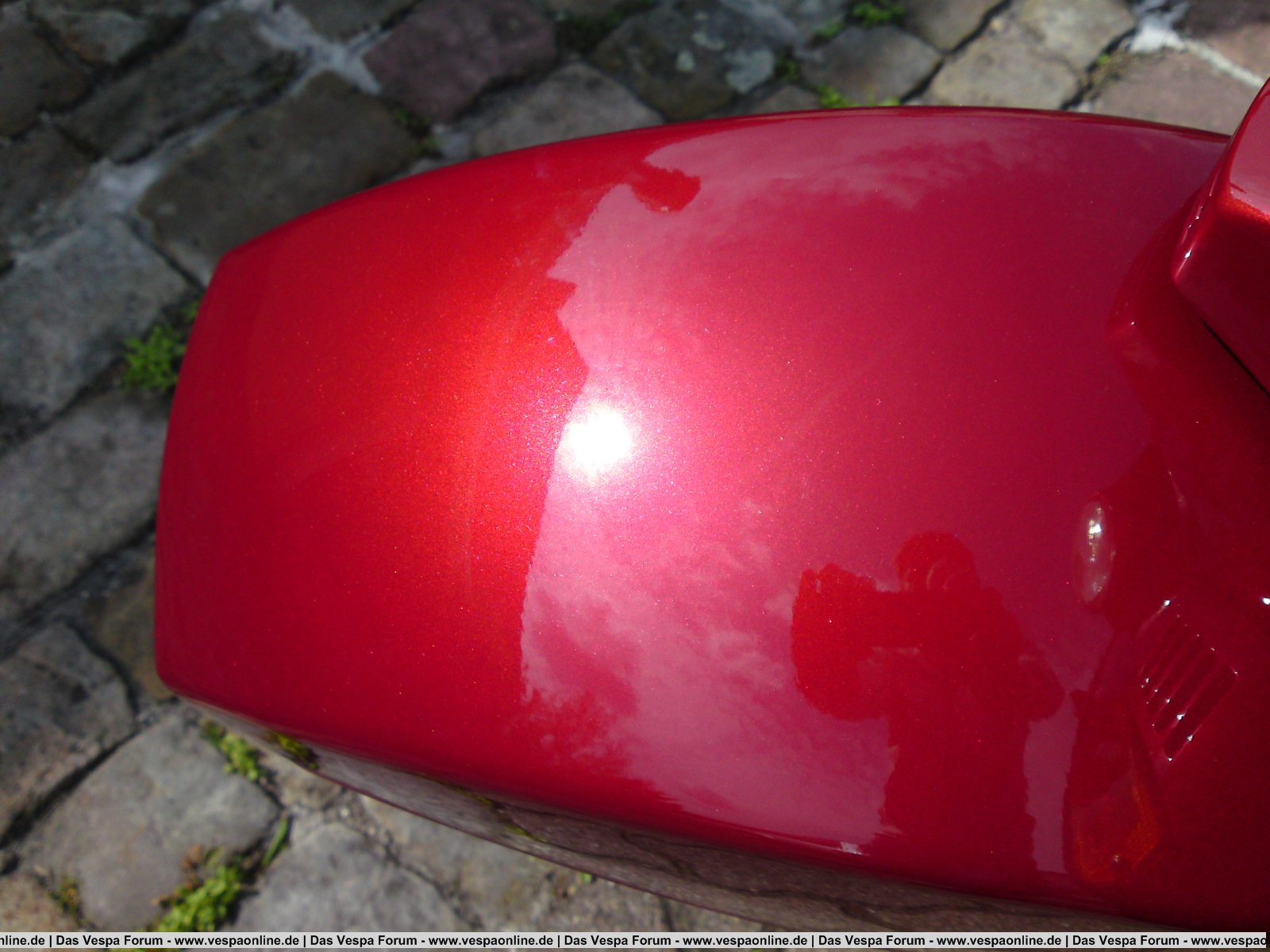 Naja, is zum Glück kein Standardweinrot Metallic. Farbe hab ich selbst anmischen lassen und gabs so nie bei Piaggio. Ist einmalig auf der Welt. :D