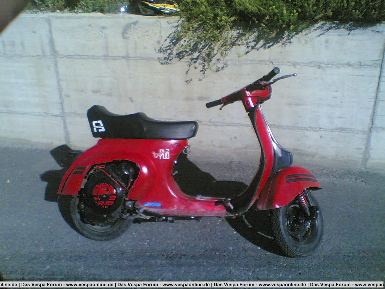 100ccm Malossi, Proma Auspuff, Malossi 4-scheibenKupplung, Membranansaugstutzen 24mm Polini, 24mm Kolbenvergaser Dell´Orto, Sportstossdämpfer hinten, Lüfterrad abgedreht, motorblock ausgeschliffen