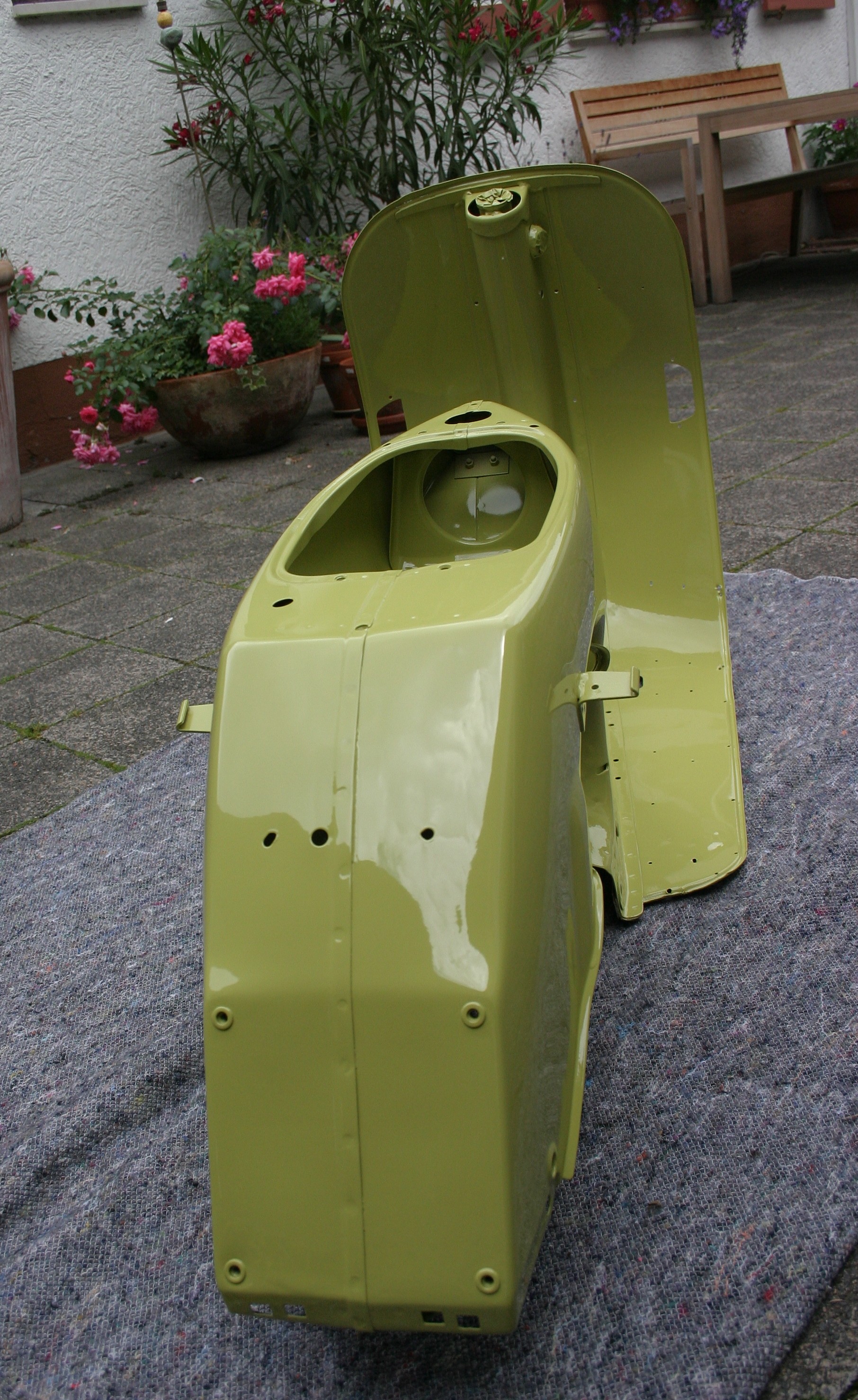Letzendlich möchte ich die Trittblechenden und die linke Seitenhaube beilackieren und es sollte farblich schon halbwegs hinkommen.
