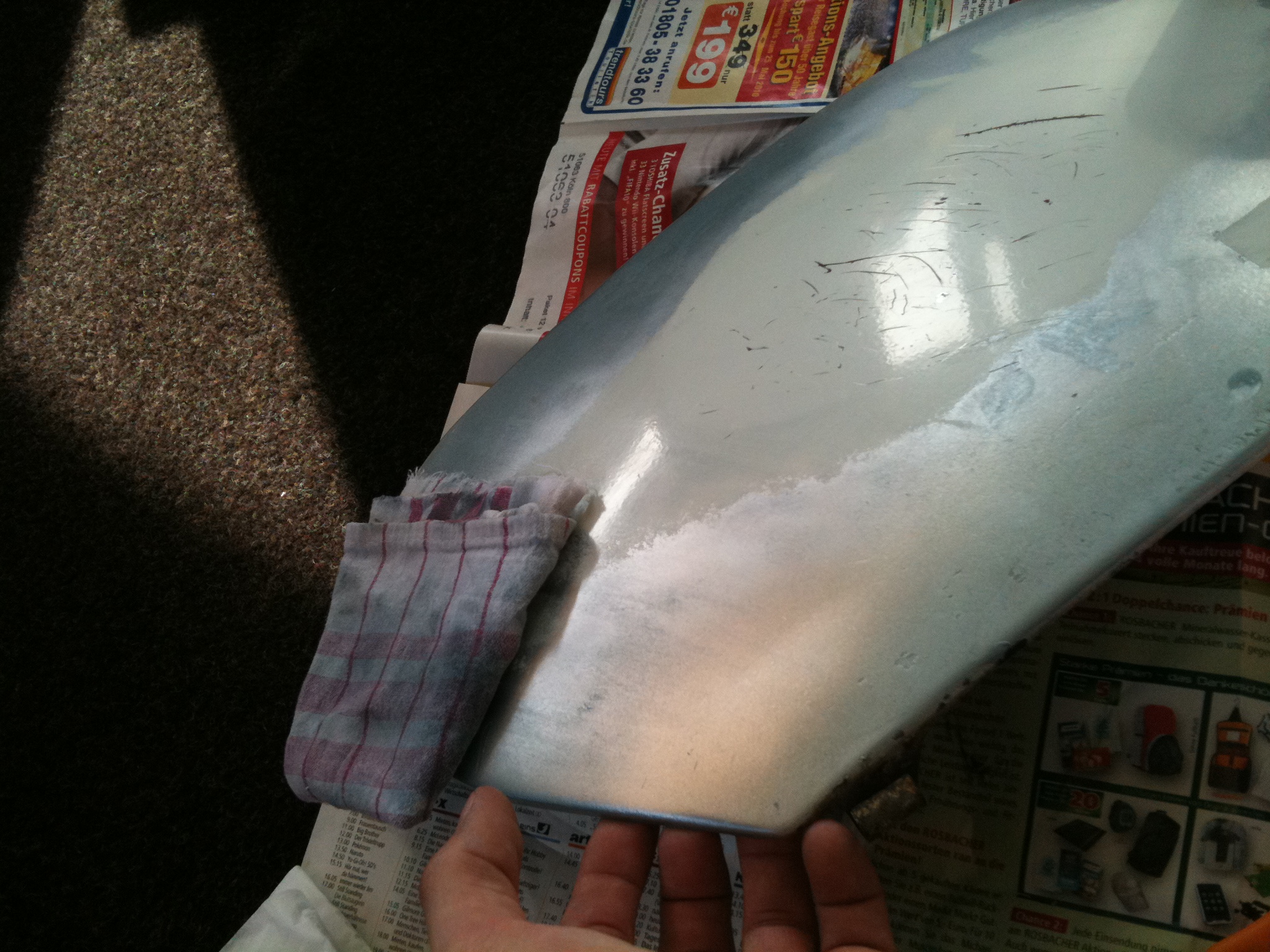 Letzendlich möchte ich die Trittblechenden und die linke Seitenhaube beilackieren und es sollte farblich schon halbwegs hinkommen.