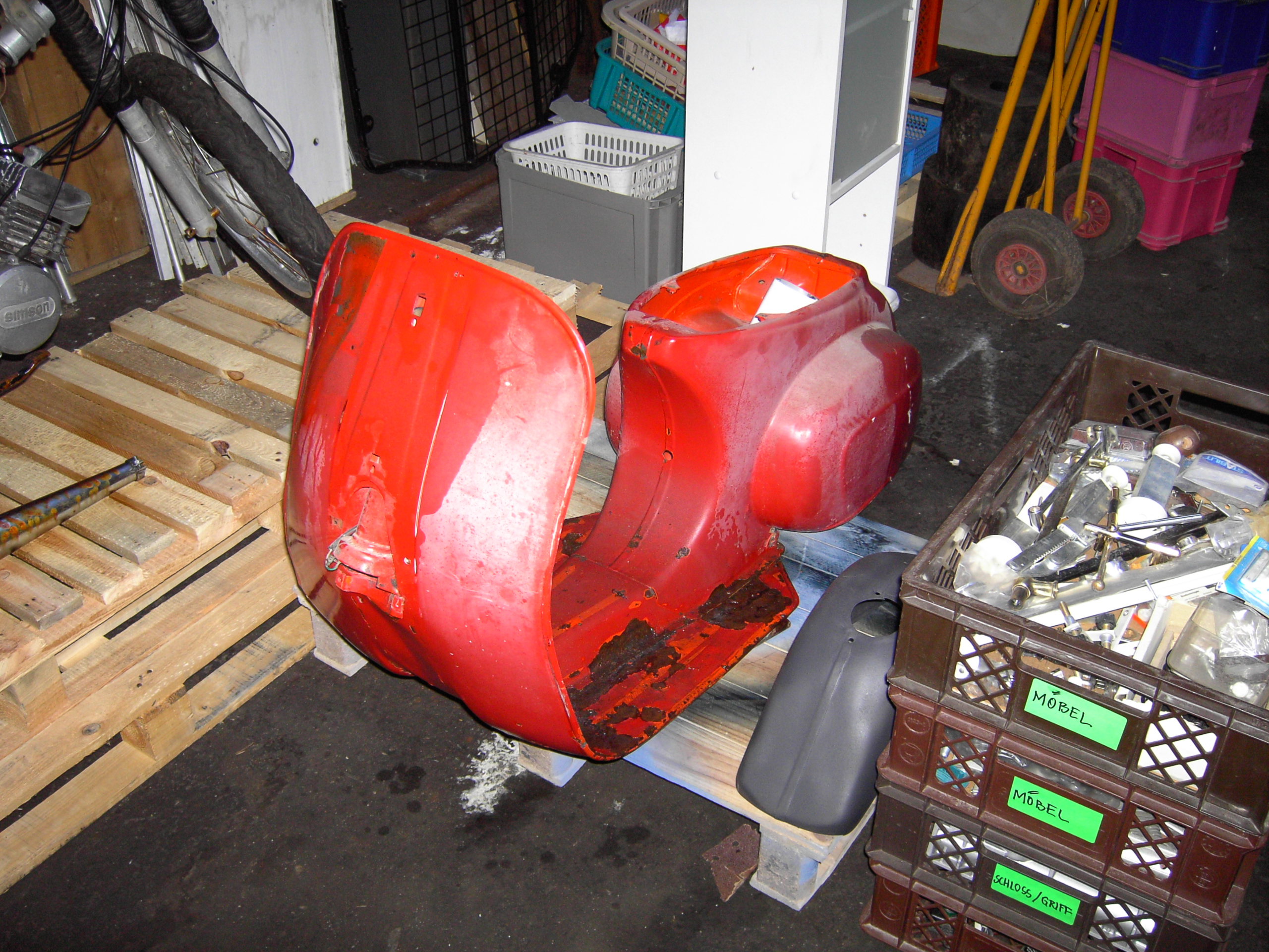 stimmt schon hat ne welle im beinschild, sieht aber auf dem bild schlimmer aus als es ist. ich hab den abstand gemessen vom steuerrohr zur sitzbankaufnahme und das maß stimmt. allerdings kommt da auch ein komplett neues beinschild rein, der rostfraß ist ziemlich übel.