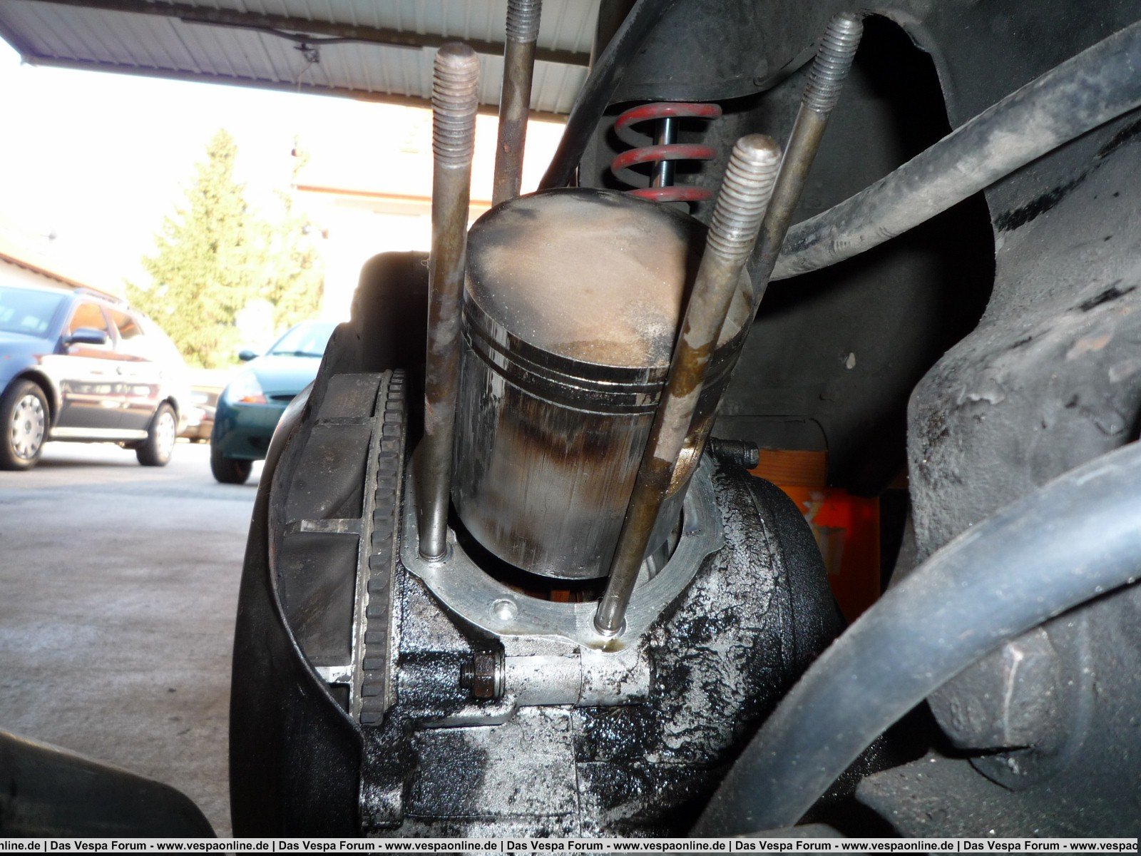 Ich habe erst später erfahren, dass die Vespa nach dem Umbau ca. 16 Monate gestanden hat. Jedenfalls ist der Motor undicht. Es wurde jetzt schon mal nachgearbeitet, angeblich war die Getrieböl Ablasschraube locker. Gestern habe ich sie abgeholt, der Motor war äußerlich komplett sauber. Heute bin ich ca. 30km gefahren , danach sah der Motor so aus (Videos im Link).