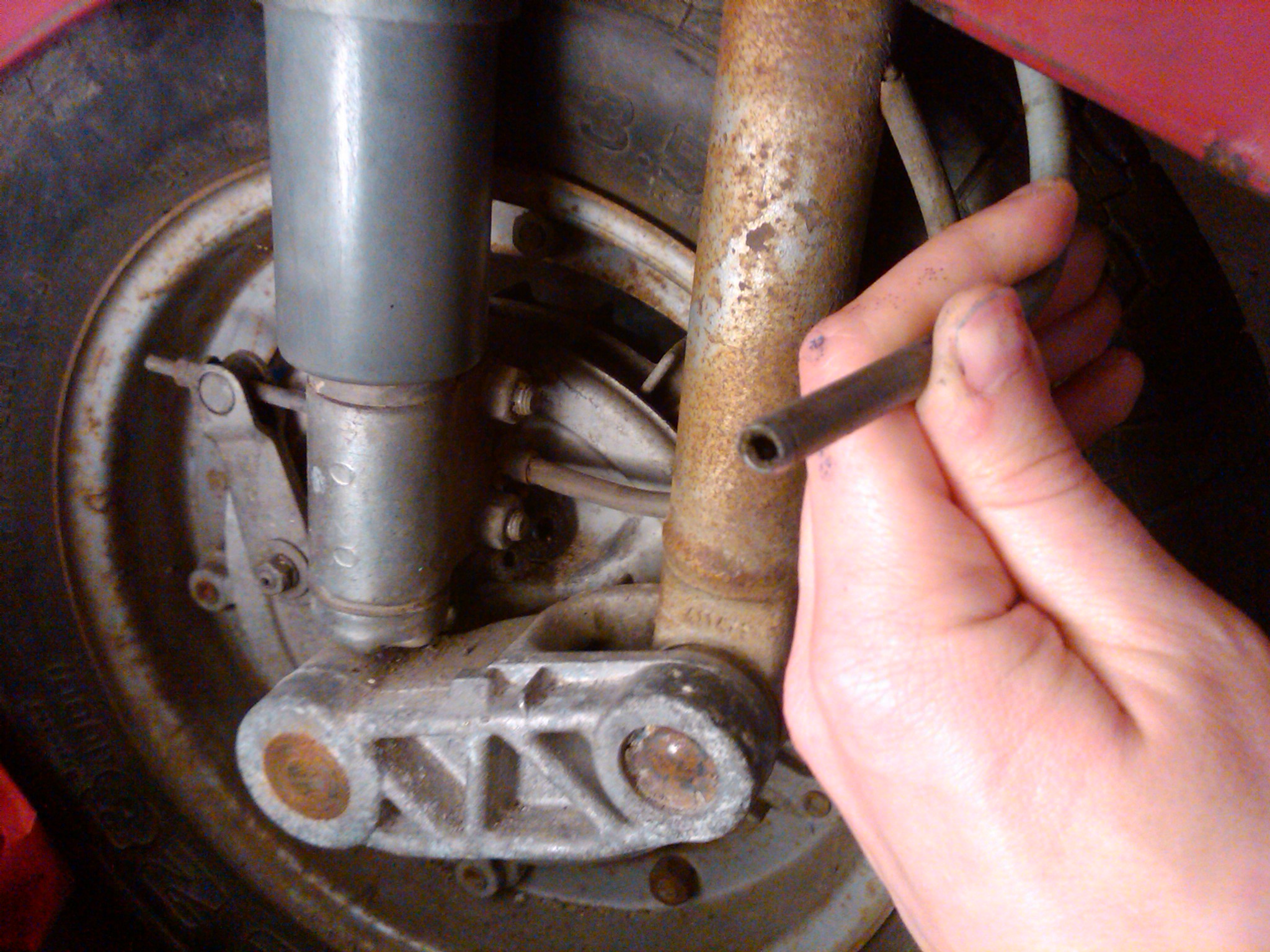 Nun ist es soweit, der Motor streckt die Hufe. Das Hinterrad hat locker 1 cm Spiel, Tendenz schnell steigend.