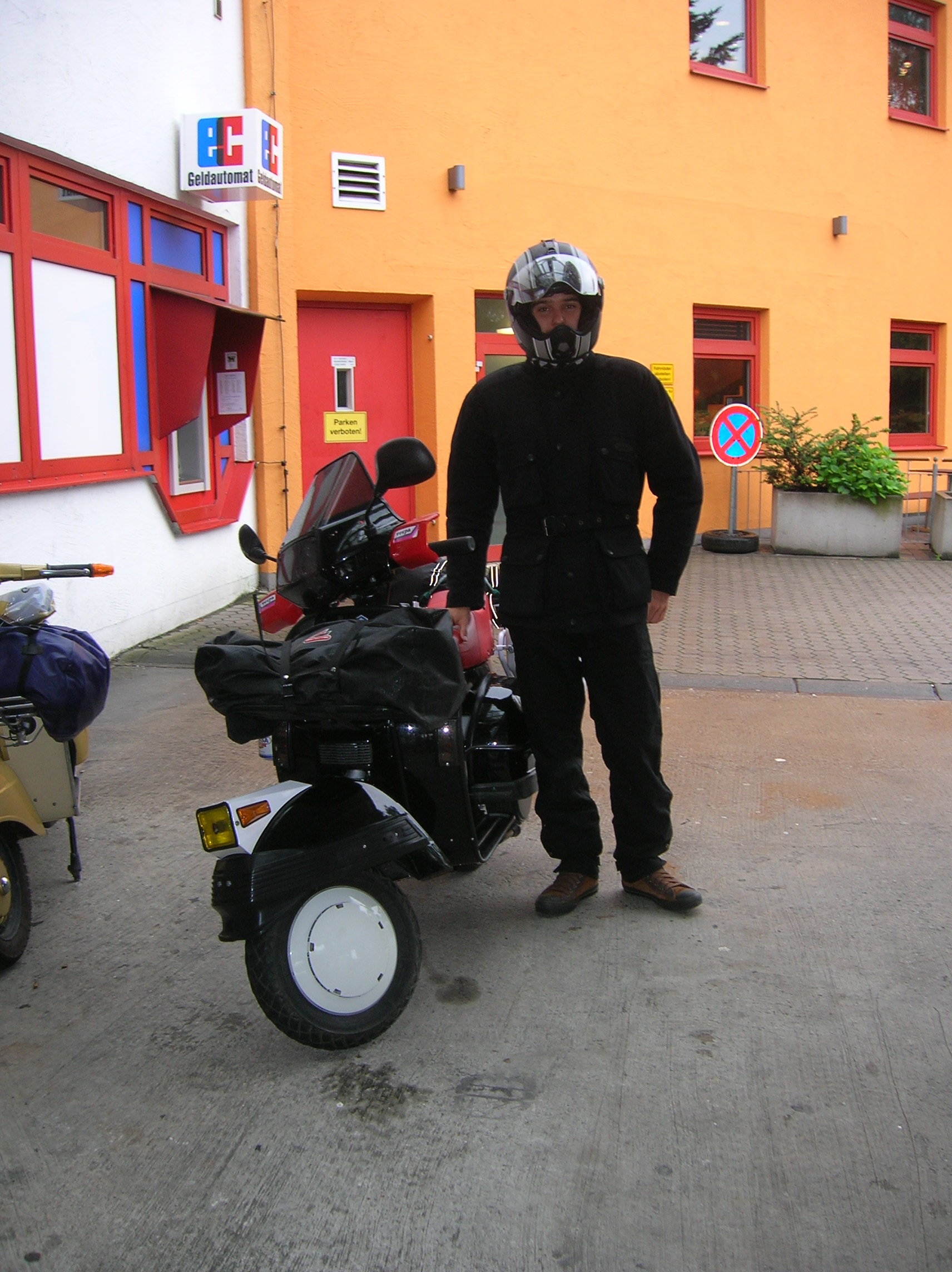 Nach 1 Monat kloppt mir während der Fahrt völlig unerwartet die Vorderradbremse (zum Glück nur bei Tempo 30) rein, ich kann mich gerade so mit einer geübten Judorolle über den Lenker hechten und komme sicheren Standes auf beiden Beinen zum Stehen. Die Cosa habe ich dann mit der wütenden Energie die ich dann noch hatte, auf einen öffentlichen Motorradparkplatz in der Nähe geschoben und dort ein halbes Jahr stehen lassen. (Ich weiß - Schande - ich war wütend auf mich, meinen Vater und sonst auch auf alles).