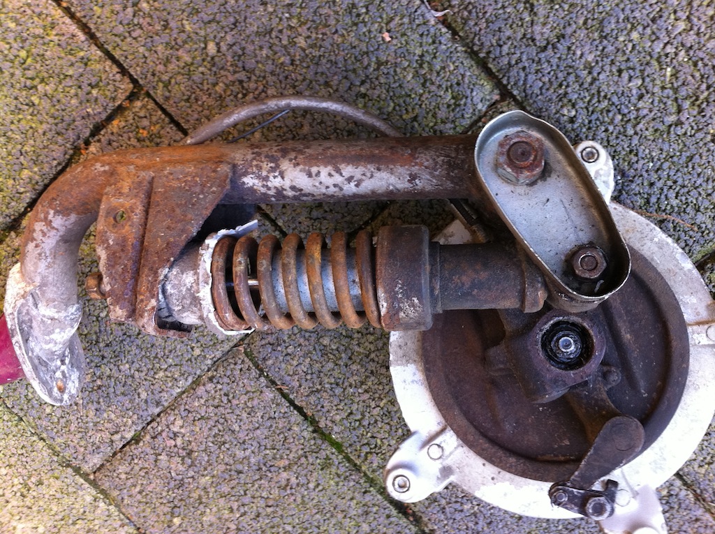 Nach 1 Monat kloppt mir während der Fahrt völlig unerwartet die Vorderradbremse (zum Glück nur bei Tempo 30) rein, ich kann mich gerade so mit einer geübten Judorolle über den Lenker hechten und komme sicheren Standes auf beiden Beinen zum Stehen. Die Cosa habe ich dann mit der wütenden Energie die ich dann noch hatte, auf einen öffentlichen Motorradparkplatz in der Nähe geschoben und dort ein halbes Jahr stehen lassen. (Ich weiß - Schande - ich war wütend auf mich, meinen Vater und sonst auch auf alles).