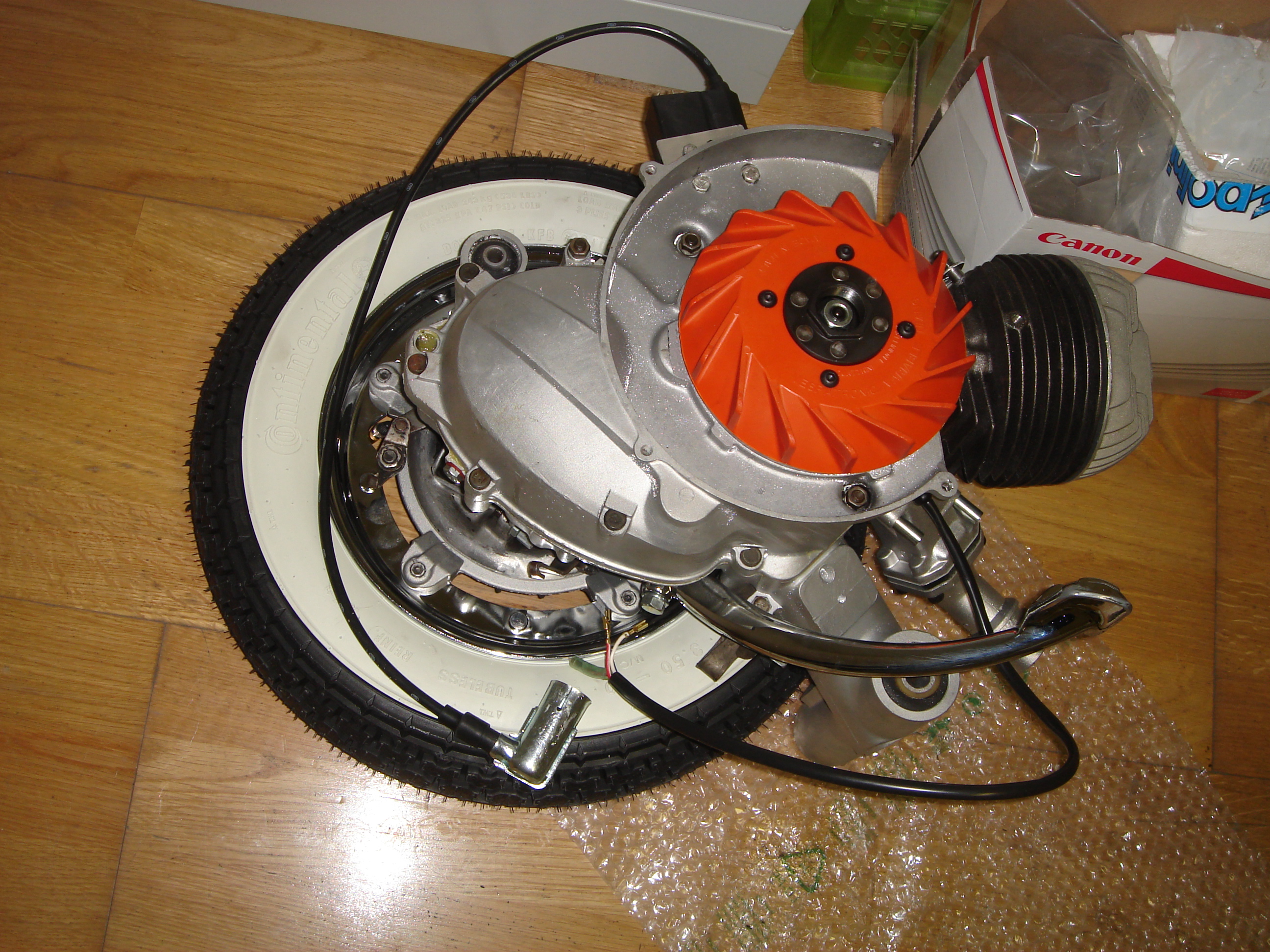 Ich habe erst später erfahren, dass die Vespa nach dem Umbau ca. 16 Monate gestanden hat. Jedenfalls ist der Motor undicht. Es wurde jetzt schon mal nachgearbeitet, angeblich war die Getrieböl Ablasschraube locker. Gestern habe ich sie abgeholt, der Motor war äußerlich komplett sauber. Heute bin ich ca. 30km gefahren , danach sah der Motor so aus (Videos im Link).