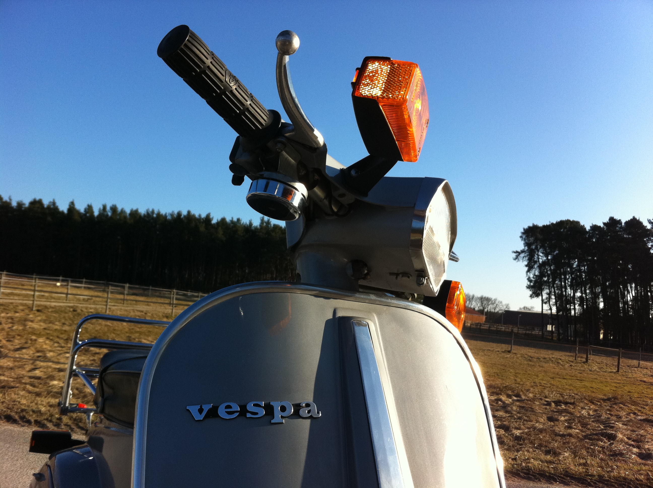 Sonst hat die Vespa eine Handschaltung, keinen Kickstarter sondern nur einen E Starter.