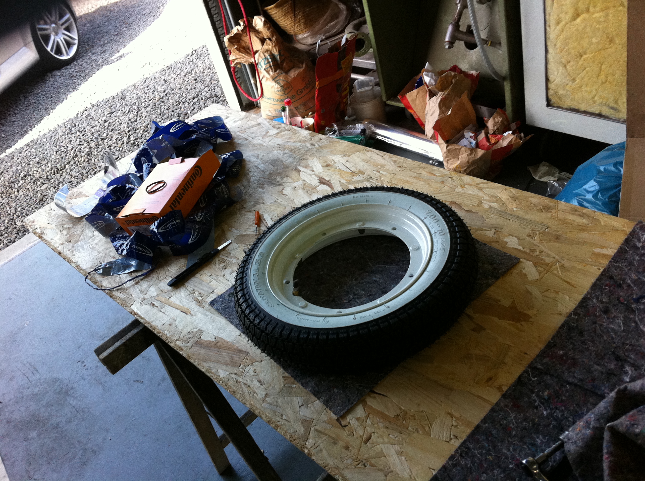 Es tropft hinten rechts, der Motor ist aber auch oben feucht, das komplette Hinterrad ist rechts voller Öl. Das Öl auf dem Auspuff ist vermutich vom Hinterrad dorthin geschleudert worden. Meine Vermutung ist, dass entweder dr Motor beim Zusammenbauen nicht gut abgedichtet wurde, oder dass die Undichtigkeit durch die lange Standzeit nach dem Zusammenbauen hervorgerufen wurde. Meiner Meinung nach müsste der Motor neu abgedichtet werden,