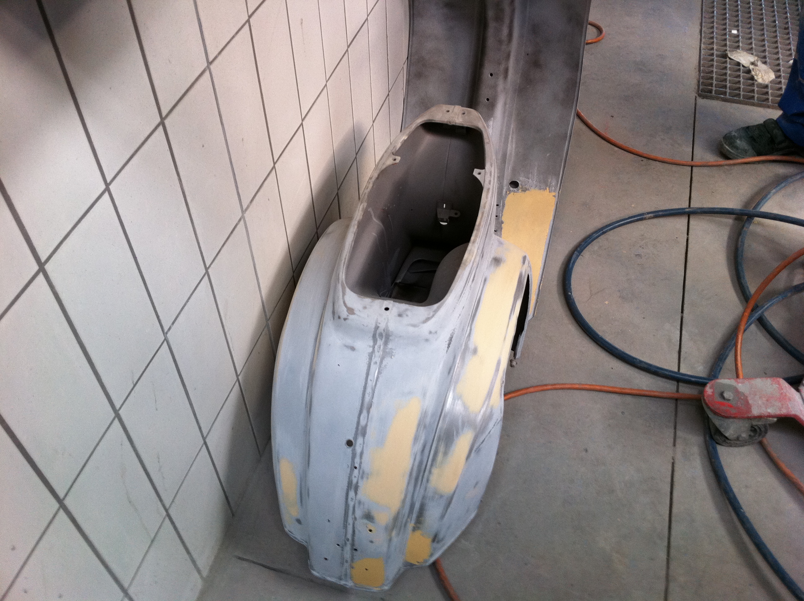 Hallo, ich habe bei der abgebildeten PX 80 lusso die Trittbleche geschweißt. Da sie noch komplett im O-Lack steht (und das soll so bleiben), möchte ich die geschweißten Stellen nur beilackieren. Es ist eine Vespa von 1990, gebaut in Deutschland.