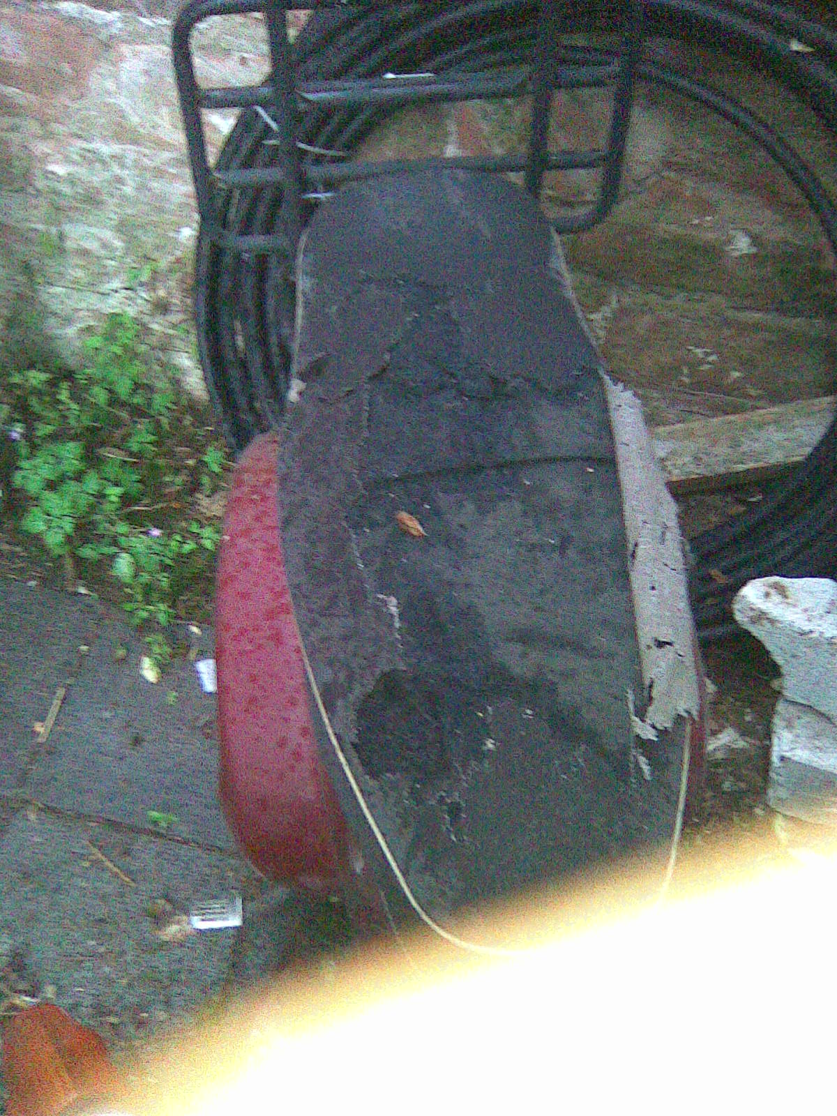 Dieses schreckliche Gepäckträgergeraffel hab ich erstmal abgeschraubt. Falls dies jemand für seine Porno-Yacht braucht, einfach melden.