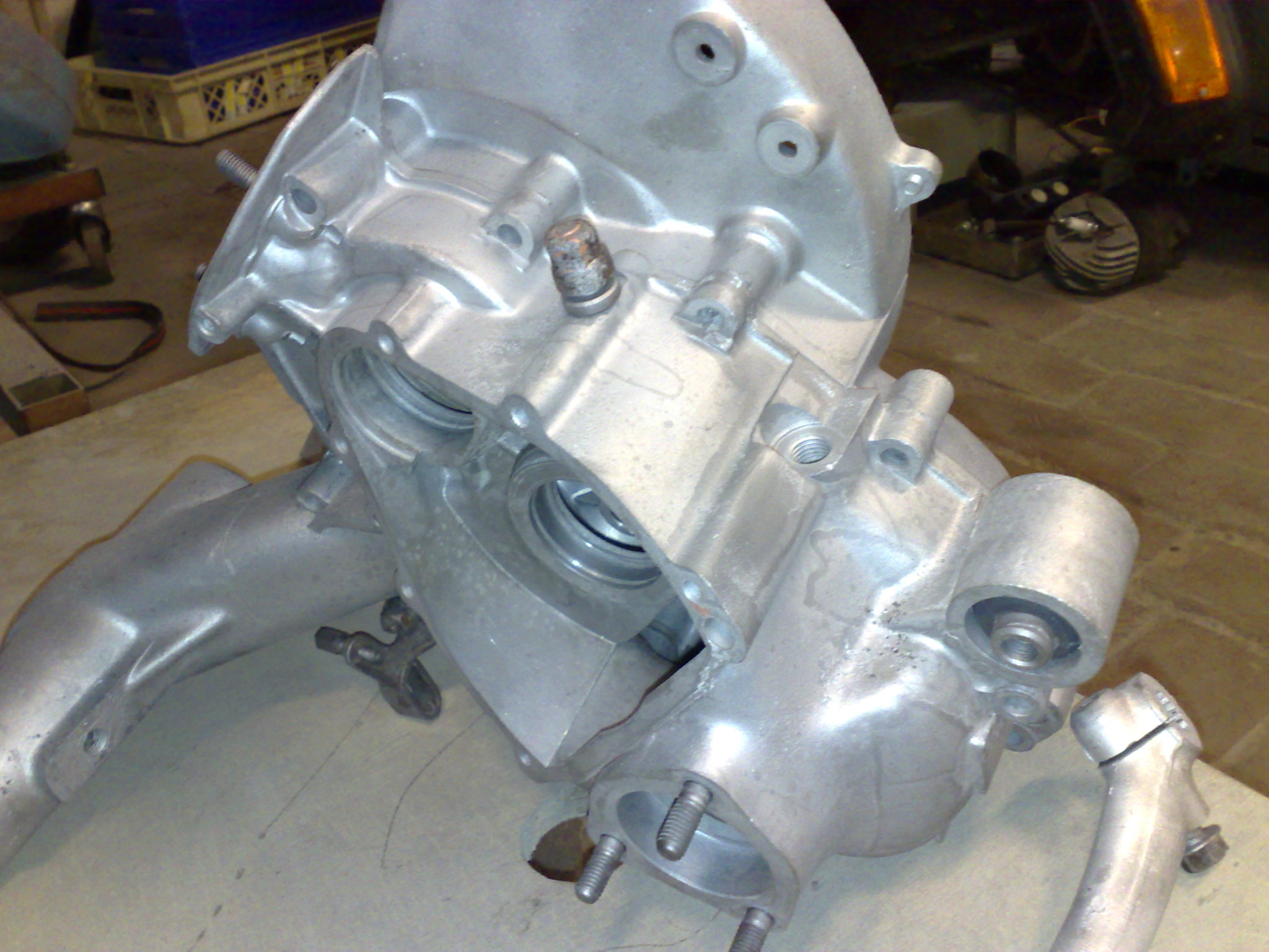 Ich habe erst später erfahren, dass die Vespa nach dem Umbau ca. 16 Monate gestanden hat. Jedenfalls ist der Motor undicht. Es wurde jetzt schon mal nachgearbeitet, angeblich war die Getrieböl Ablasschraube locker. Gestern habe ich sie abgeholt, der Motor war äußerlich komplett sauber. Heute bin ich ca. 30km gefahren , danach sah der Motor so aus (Videos im Link).
