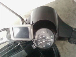 Nun die Bilder ... Der eingebaute Halter mit Navi an der Vespa![]()