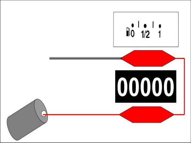 Die Stofitten zwischen Tankanzeige und Kilometerzähler sowie unter dem Zähler einpassen. Dann die Kabel durch ein Loch an der Unterseite des Tachos herausführen.