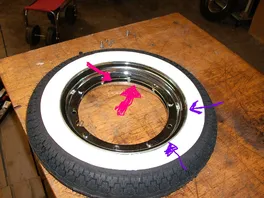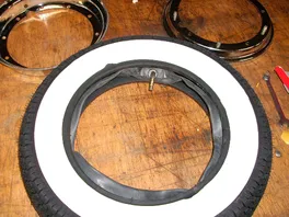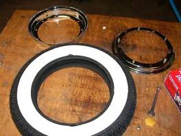 Hier als Beispiel die Montage von Weisswandreifen auf Chromfelgen.![]()
