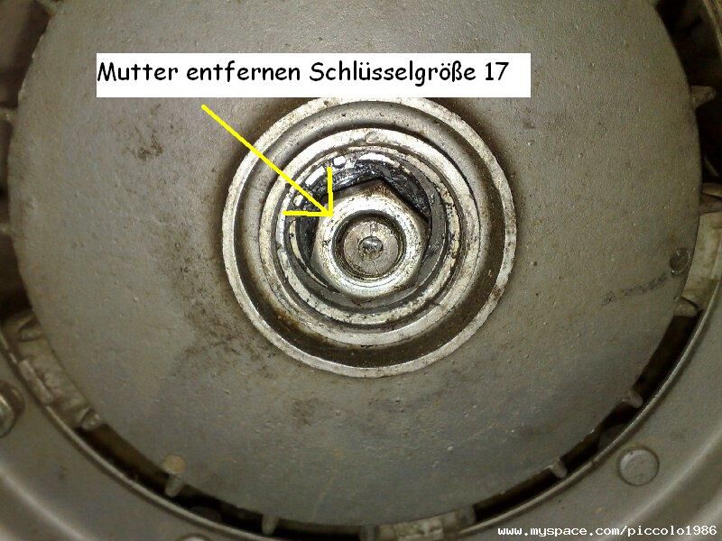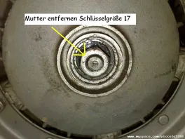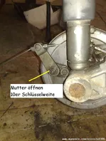 - Dahinter befindet sich eine Mutter Bild2. Bei mir war es eine Mutter mit einer Schlüsselweite von 17 also mit der 17er Nuss und Ratsche öffnen.