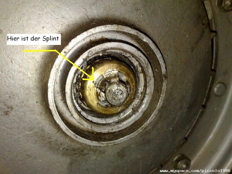 - Man nimmt die Beißzange und zieht den Splint aus der Kronenmutter. Auf Bild1 sieht man die Kronenmutter.