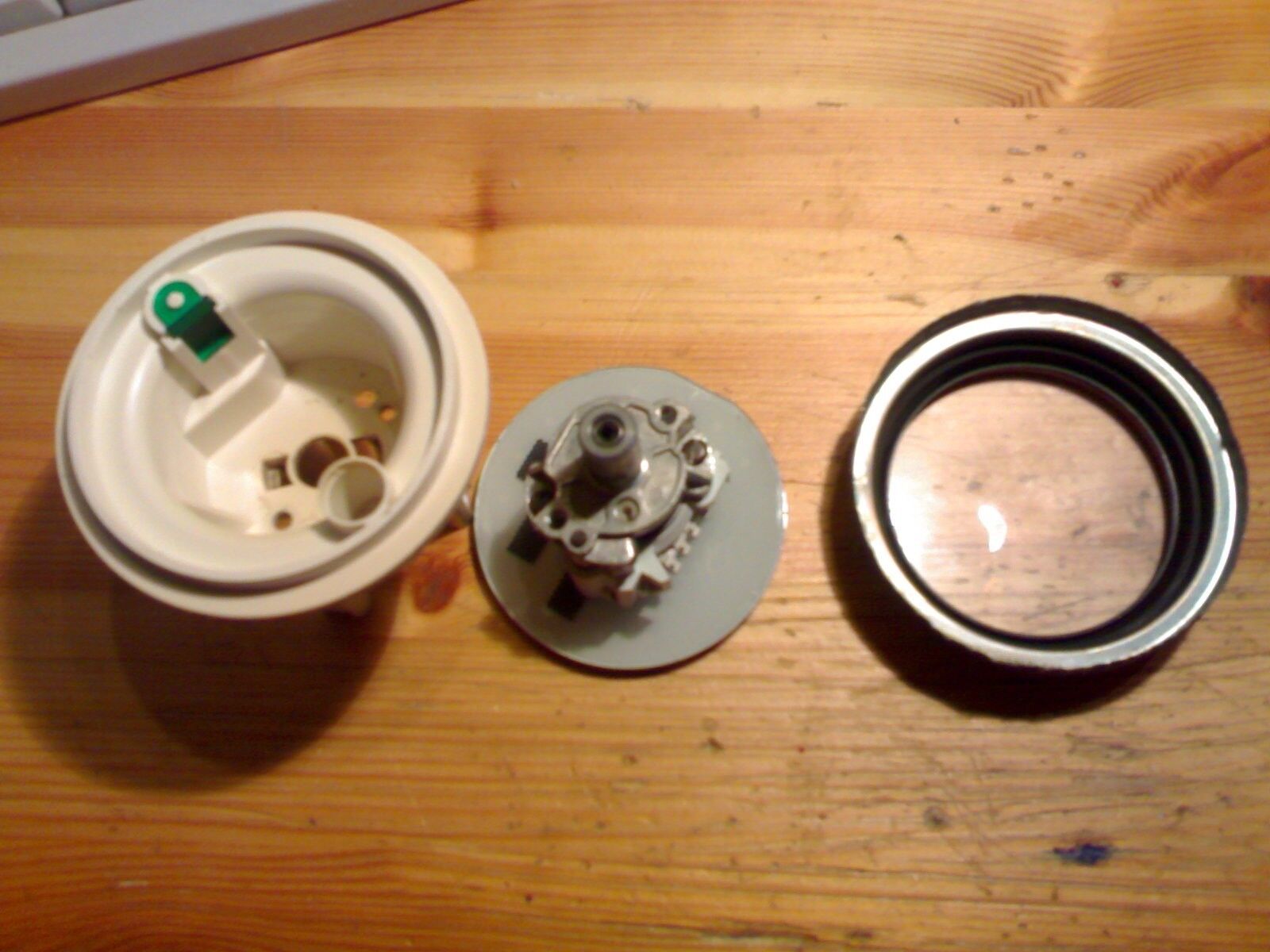 Erst danach habe ich die Nadel vorsichtig mit einem mittleren Schraubenzieher UNTER der Scheibe nach oben gedrückt.