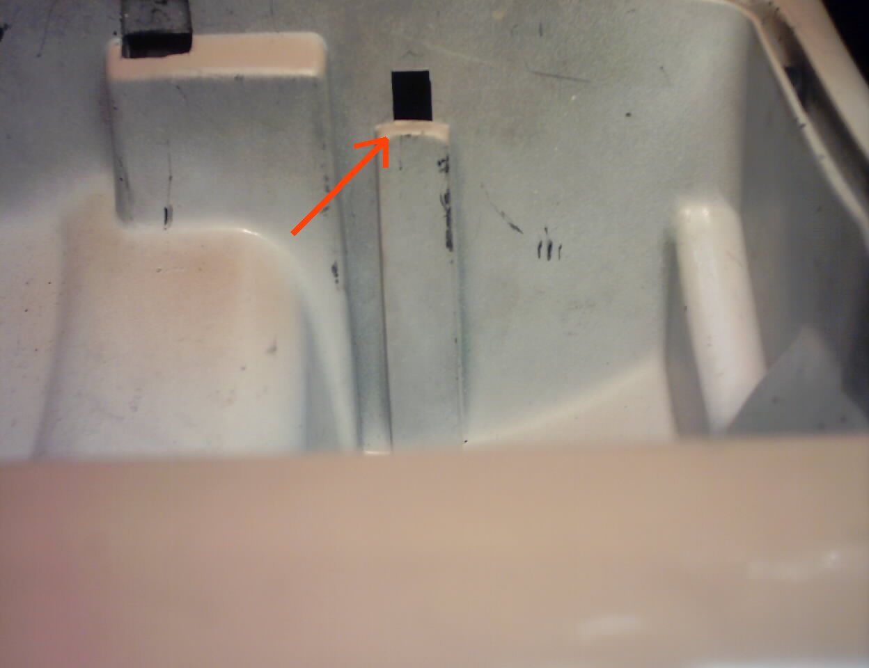 Durch das Loch kannst Du nun mit einem kleinen Schraubendreher anfangen zu Fummeln. Dabei muß die Kleine Nase welche auf diesen Bildern zu sehen ist, hinein drücken.