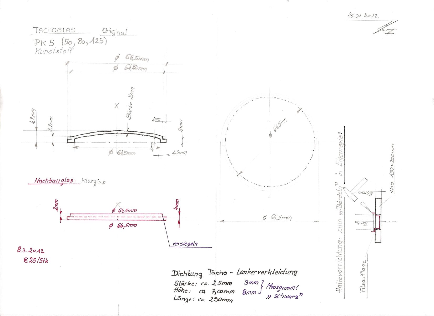 Mir ist schon klar, dass ein Tachodienst dies sicher professioneller macht (zumindest das Bördeln des Ringes und auch das Eichen des Tachos), wobei mir wichtig war, welche Teile können durch was ersetzt werden (Tachoglas, Tachonadel, Gummidichtung) und welcher finanzielle Aufwand ist von Nöten.