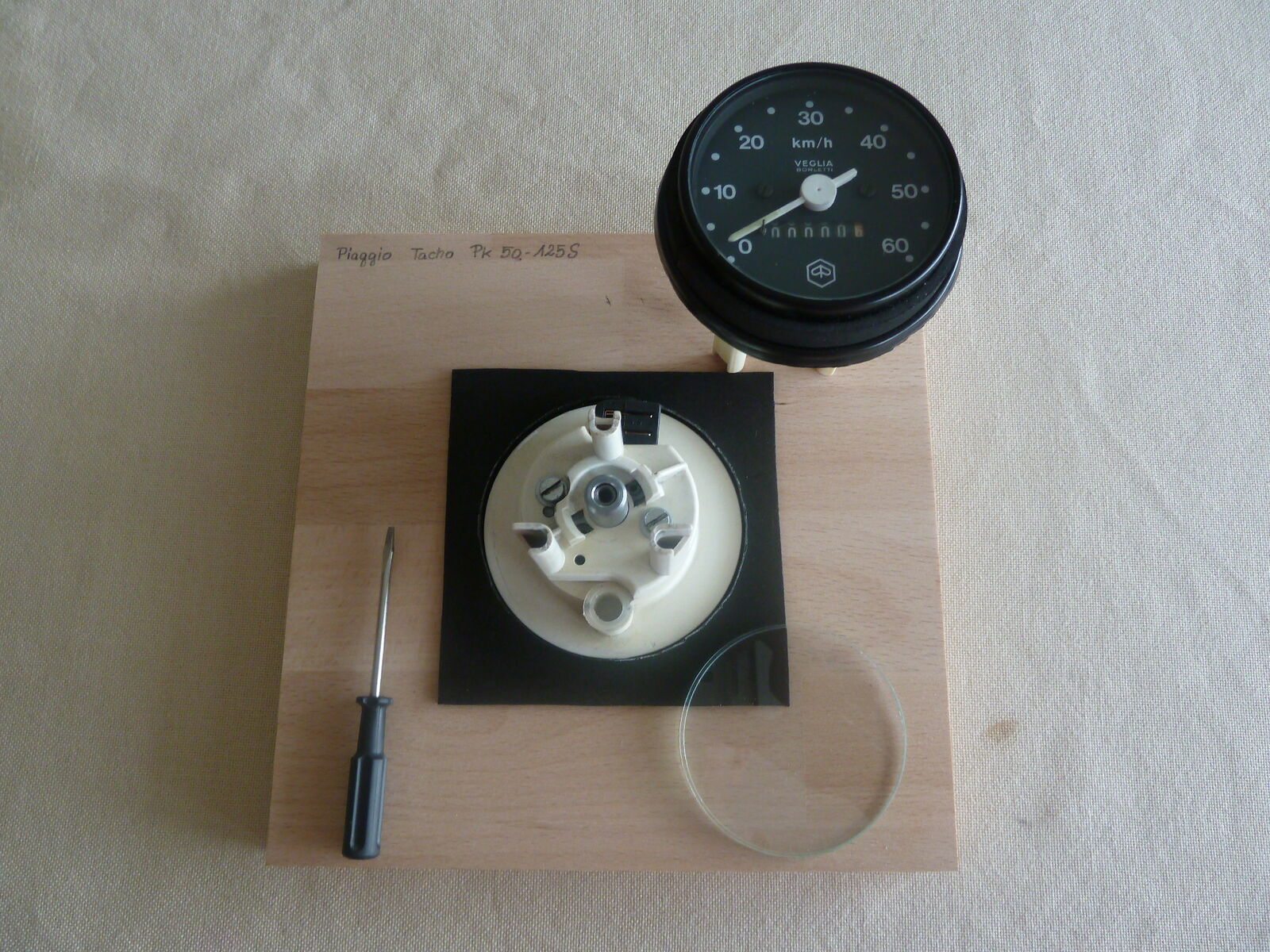 Leider gibt es für diesen Tachotypen keine Ersatzteile (außer der Lampenfassung und den Befestigungsschrauben, Dichtung ist bei SIP auch schon ewig auf rotem Lagerbestand)