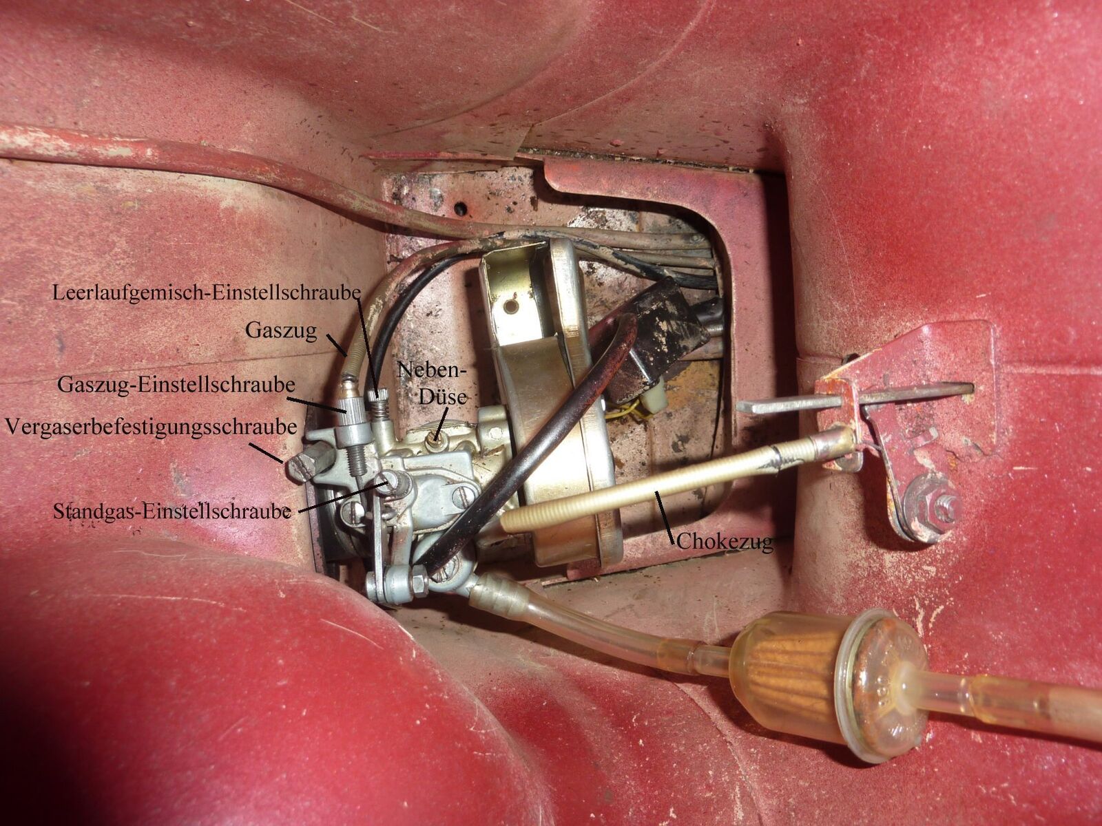 Vergaser - Ausbau - Von außen sichtbare Düsen und Einstellschrauben