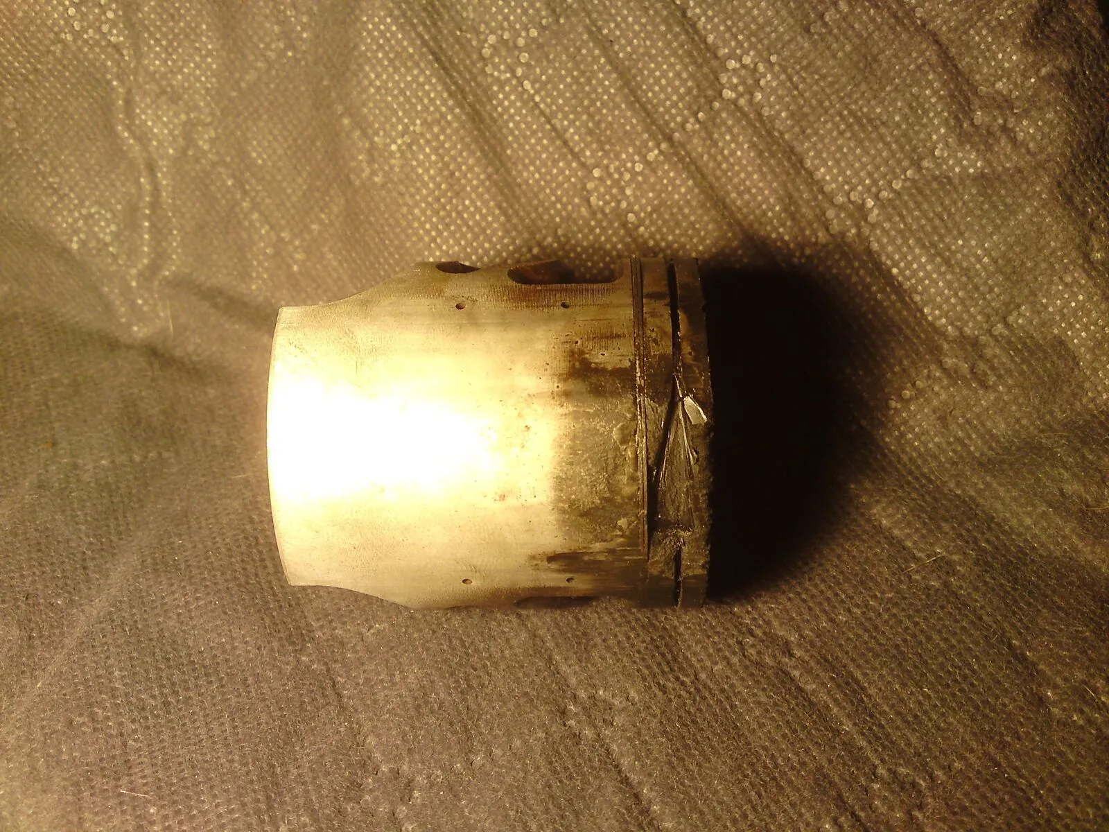 Der Sicherrungsstift am oberen Kolbenring ist im laufe der Zeit immer weiter nach inne gewandert so das sich der Kolbenring drehen konnte. ![]()