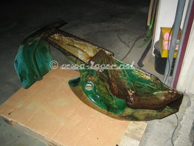 Den Restrahmen kommt am Freitag vespahansi abholen. Der braucht ein wenig Blech für seine Rally 180 Resto. Die Rahmennummer von der grünen werd ich mir aufbehalten, schliesslich hab ich noch einen Sprint V. Motor übrig