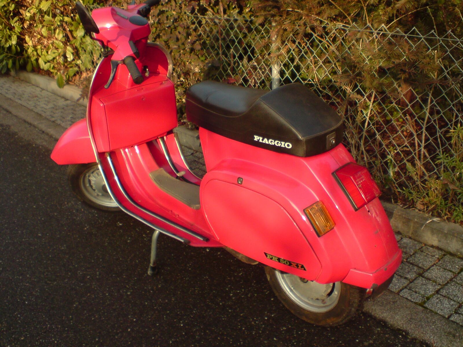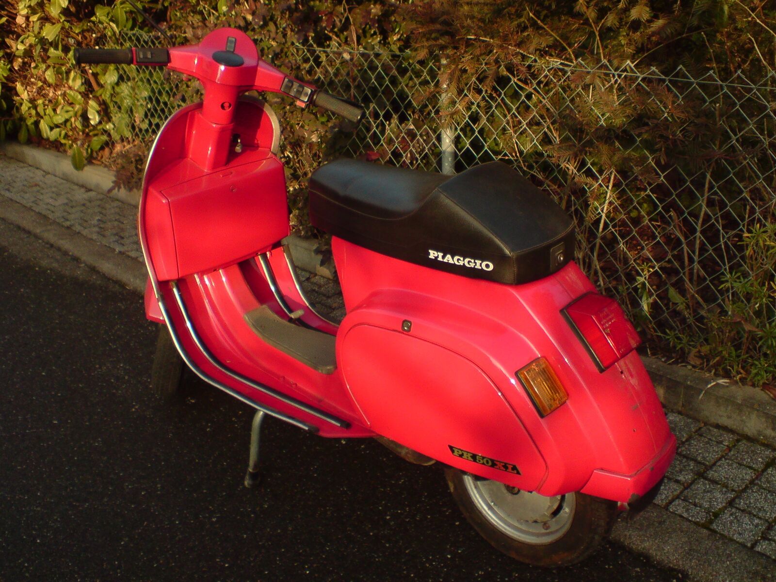 Der Typ in der Oldtimerwerkstatt hat nach seiner aussage die PK von seinem Kolegen vor drei Jahren aus Itallien mitgebracht bekommen so wie sie jetzt dasteht, hatt sie in eine Eckegstellt und vergessen, ich bin im gesprech mit ihm darauf gekommen das mein Hobby Vespa ist worauf er mir die PK zeigte wo er da stehen hat. Ich fand sie sieht für ihre 26 Jahre gut aus, natürlich hat sie auch ein paar kleine schönheitsfehler die den 100% PK-Liebhaber auffalen doch finde ich den Allgemeinzustand für die Vespa ordentlich für ihr alter, und ob irgendwelche Schrauben oder ein paar klitzekleine Roststellen mit Lackiert wurden wird meiner Nachbarin ziemlich egal sein, sie sucht einfach nur eine 50er Schaltroller mit dem sie bis zur Nachbarortschaft kommt usw. sie will bestimmt keinen schönheits Wettbewerb gewinne. Den Auspuff finde ich auch typisch für Italien, glückliche weisse habe ich noch einen originalen PK Auspuff.