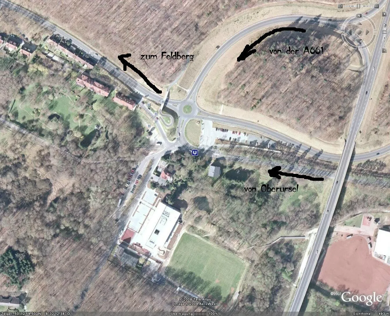 Grobe Richtung aus Oberursel ist immer Richtung Feldberg, dann kommt ihr automatisch zum Kreisel.