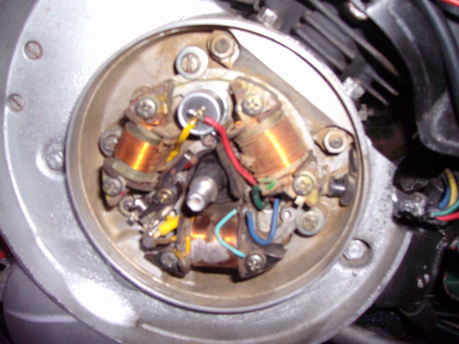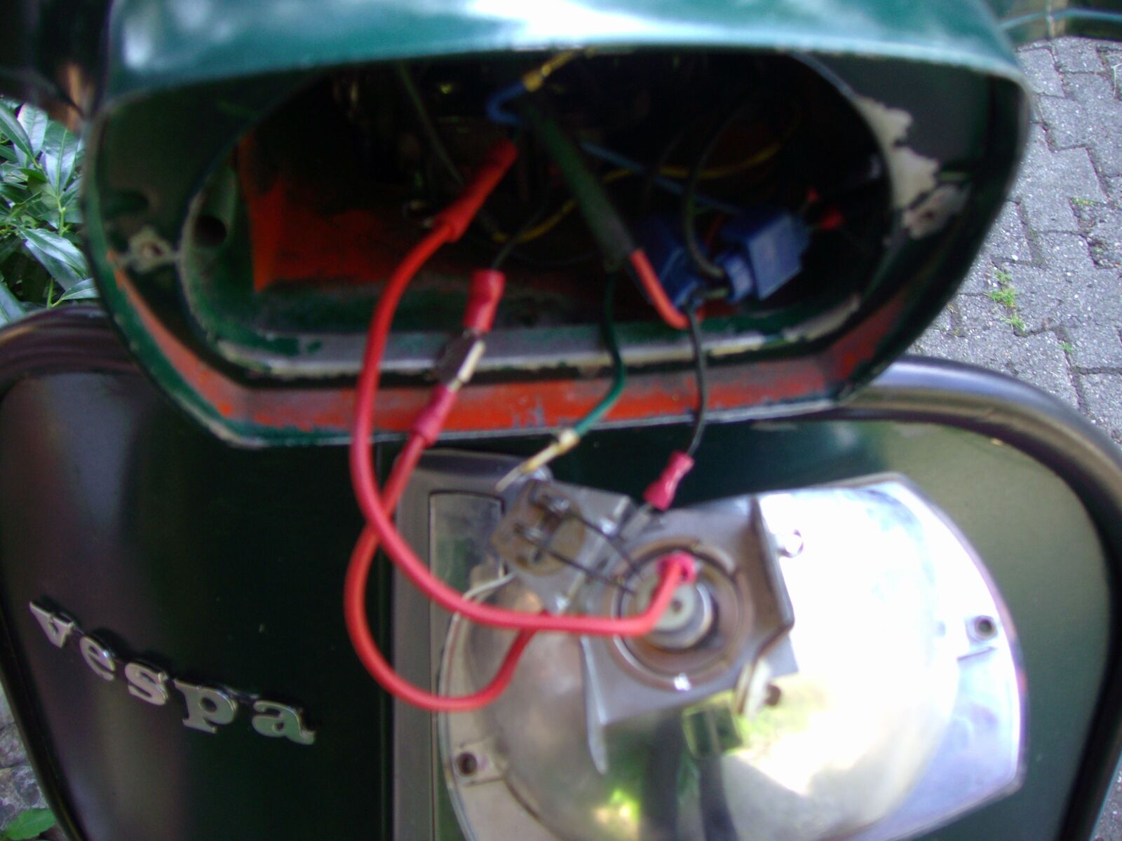 Ich habe ein Problem mit meiner V 50 BJ 1979: 75 Polini, Sito Plus 16/16 Vergaser 86 HD, alles vom Vorbesitzer.Die Vespa läut im Standgas gut springt auch schnell an. Wenn ich fahre ist sie etwas lahm und geht erst besser in den höheren Drehzahlbereichen, nach kurzer zeit nimmt sie ab und zu das Gas nicht richtig an und hat Leistungsverlust und laute Fehlzündungen. Habe erst kürzlich den Scheinwerfer montiert (war nicht dabei), im Lenker kopf sind mehrere Kabel verlängert worden, so dass mir die richtige Übersicht fehlt. Scheinwerfer leuchtet aber läßt sich nicht ausschalten, Unterbrecherkontakt funkioniert Rücklicht und Bremslicht auch.Es sind auch 2 Kabel für Lenkerblinker gelegt aber noch nicht angeschlossen. Wenn ich auf die Hinterbremse trete geht SIE aus.