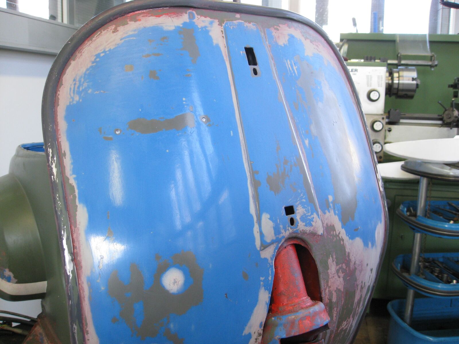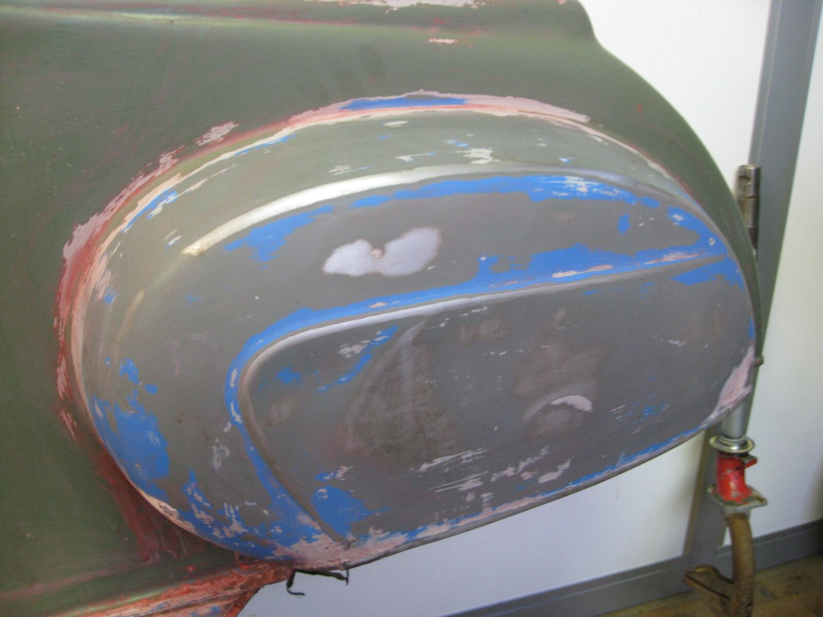 hellgrau war Grundierung für rot und das dunkelgrau war dann wohl die original Grundierung wo sie beim ersten mal Lacken schon drauf runter geschliffen haben.