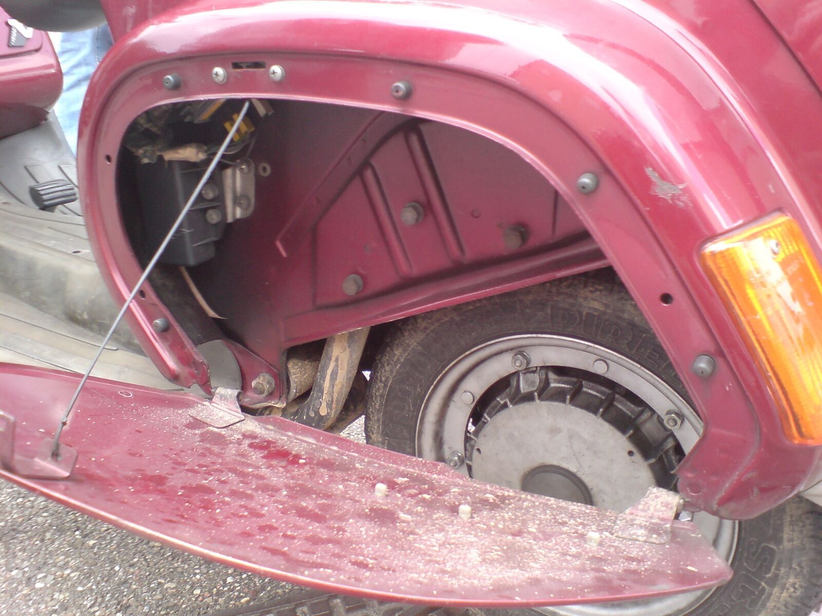 Sonst ein paar Kratzer an der rechten Backe, und ne Beule an der linken Backe und vorne unterhalb vom Lenker (siehe Bild)