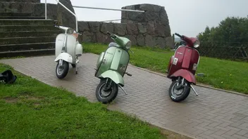 PS: Anbei 2 Fotos von den "Nicht-Schön-Wetter-Fahreren" oder besser von den "Regen-Vespas" ![]()