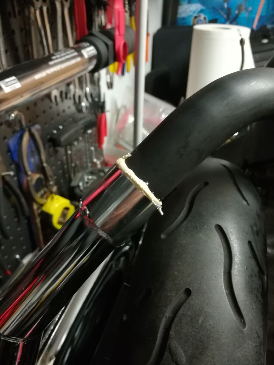 Das Rad habe ich auch dran und die Steckverbindung mit Auspuff-Montage-Paste versehen damit diese nicht mehr rotzt.